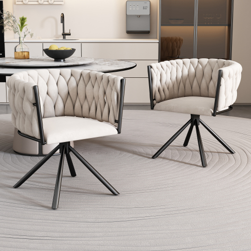 Product Name:Set of 2, velvet dining chair, single light luxury living room bedroom swivel chair, Leisure swivel chair with four metal support legs, beige,(OLD SKU:WF310506AAB)