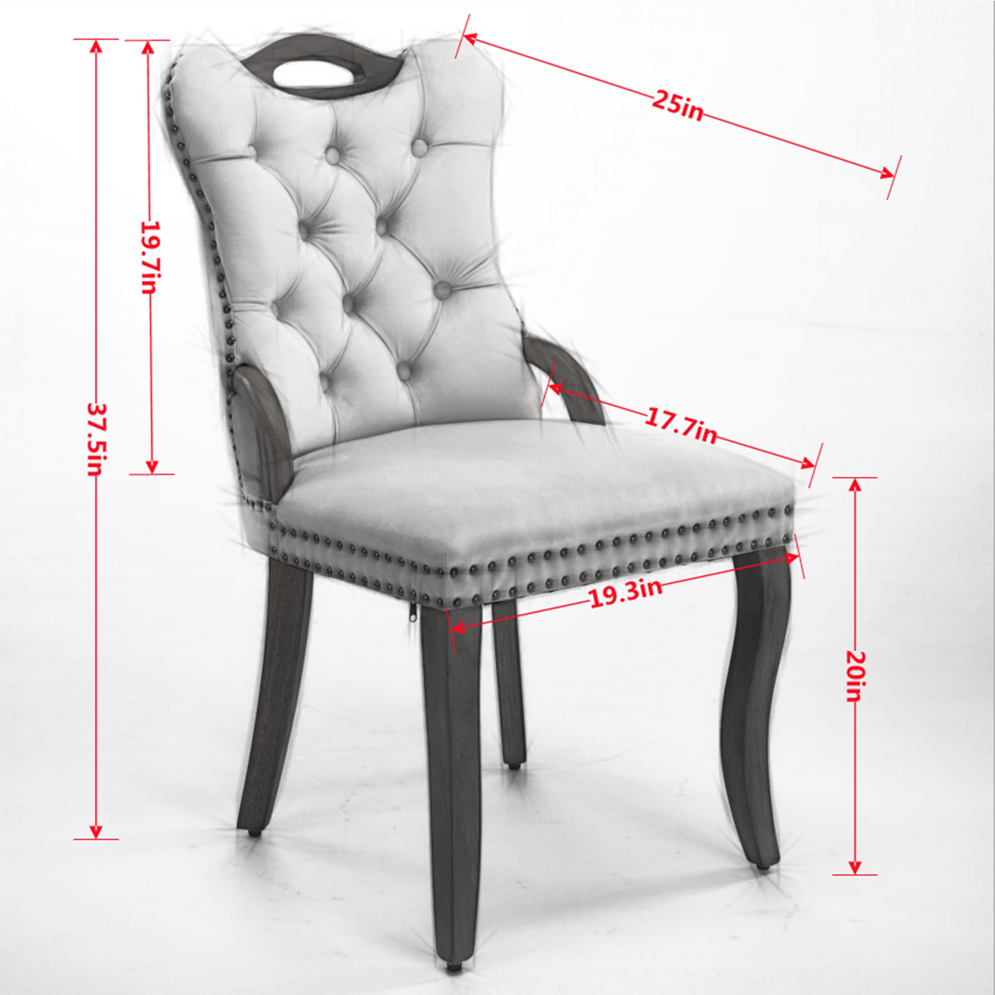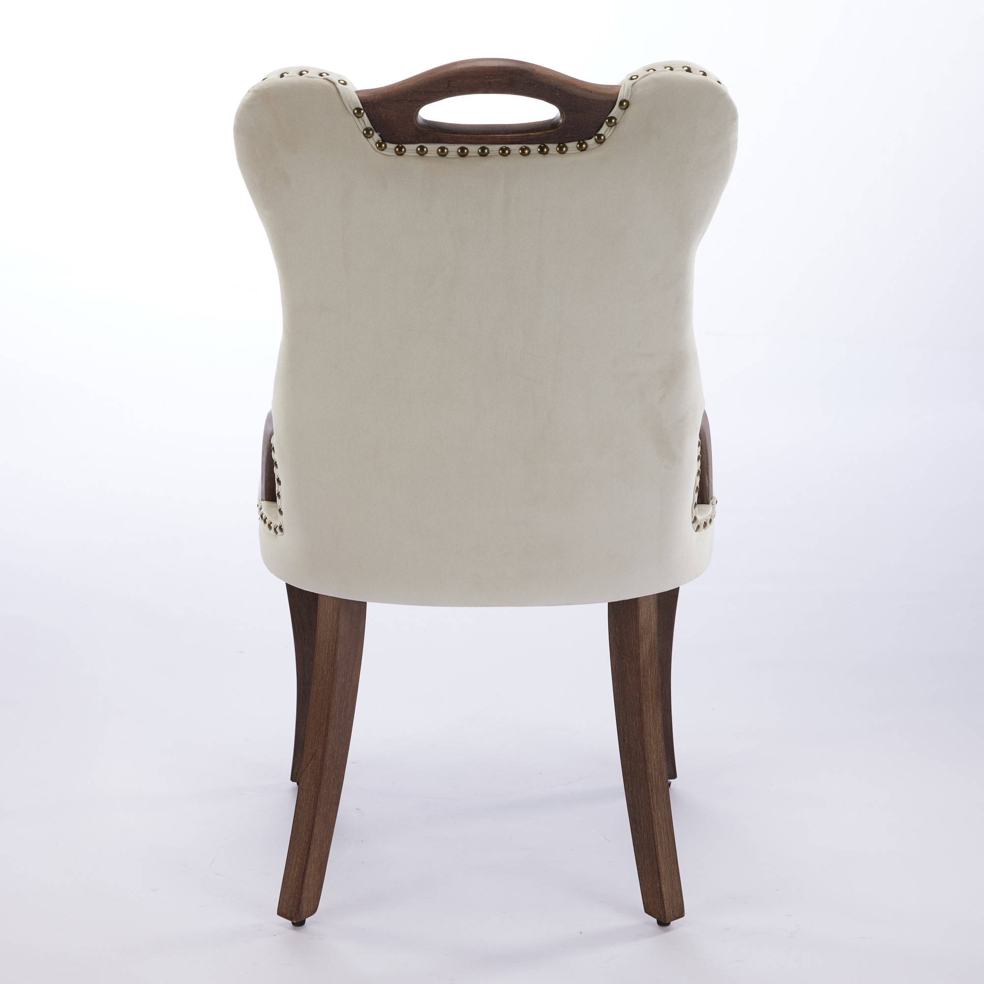 Product Name:Velvet Dining Chair with Handmade Tufted Trim, Solid Wood Handles on Top and Sides, Vintage Copper Nail Decoration, Curved Solid Wood Legs, Elegant Overall Shape,Set of 2,Beige