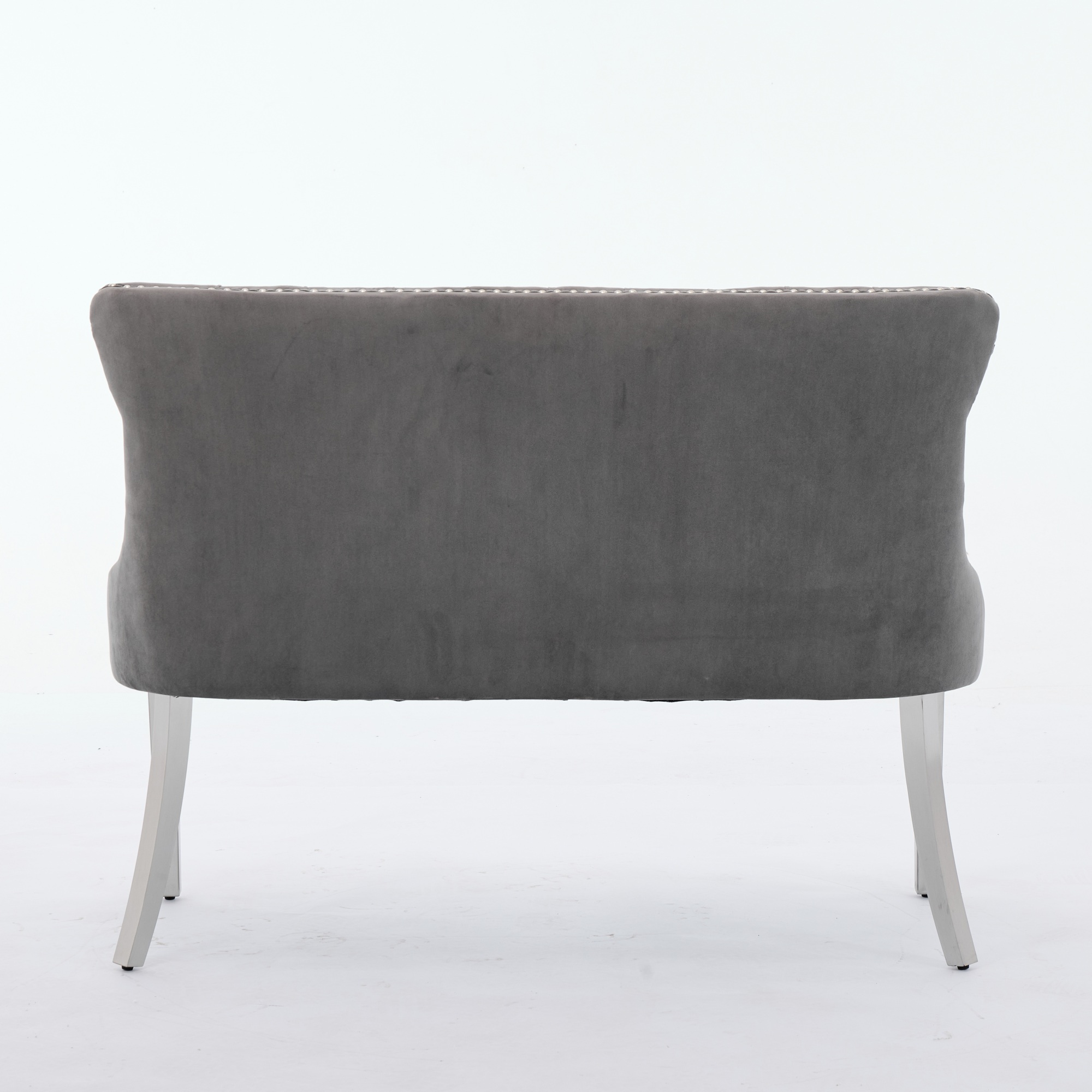 Product Name:Velvet Double Dining Loveseat Bench, Kitchen & Dining Seating, 2-Seat Tufted Bench w/Handmade Buttons, Wing Back, Brushed Silver Stainless Steel Legs, Mid Century Modern,Single Pack,Gray,SW1702GY