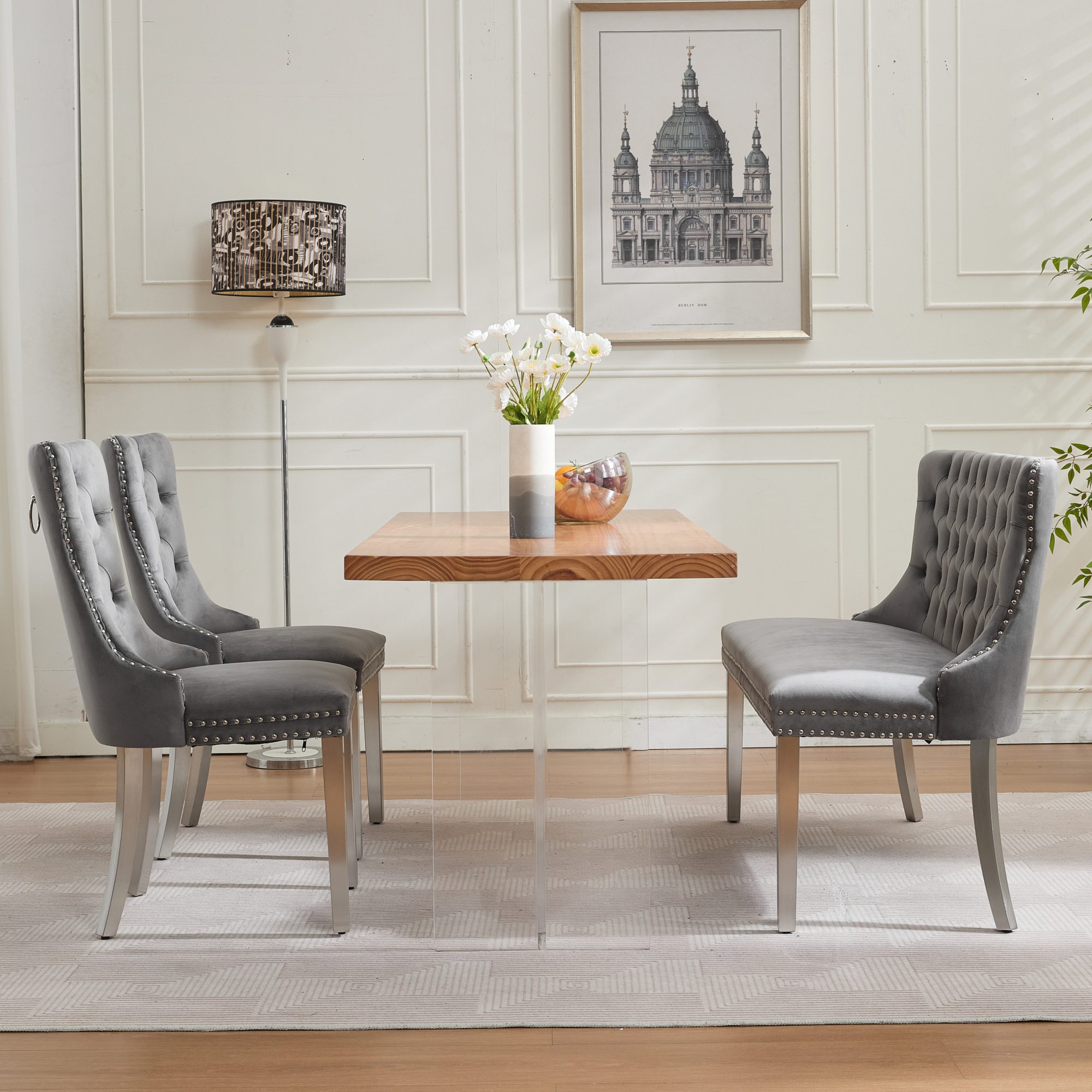 - Comfortable Velvet Upholstery: Made of soft velvet fabric, it has a delicate and skin - friendly touch and comfortable sitting feeling, which can bring a pleasant experience to the dining time.