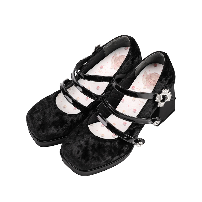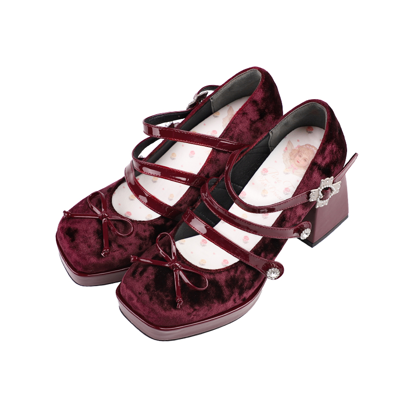 Velvet Edition Original Pearl Bow Three Buckles