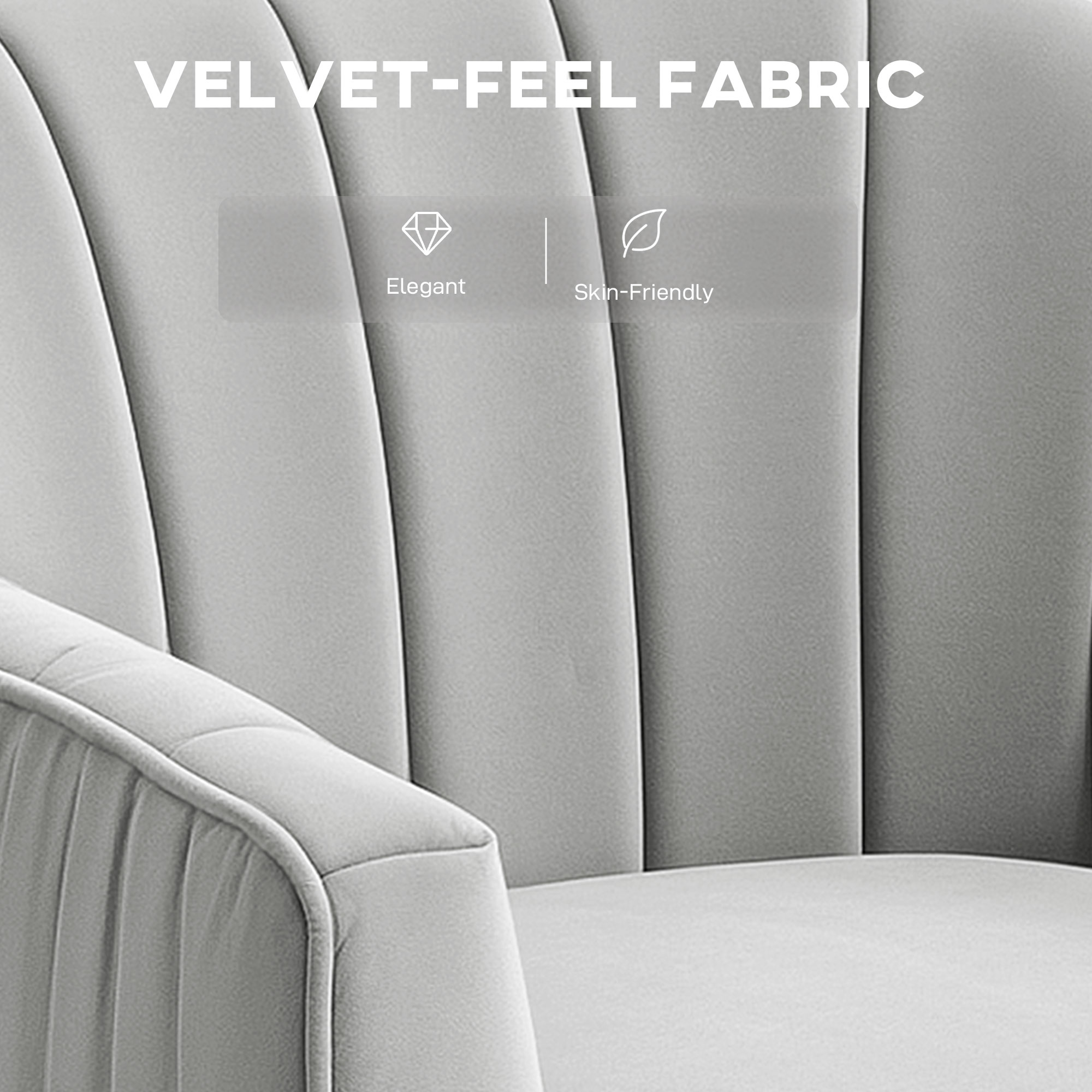 Look to this living room armchair to infuse luxury into everyday life. A tub-shaped design for plenty of sitting room, it comes with a thick padded seat for comfort. The wide back and armrests offer support. Wrapped in velvet-feel upholstery, this occasional chair is soft and beautiful; the grey colour effortlessly adds to the beauty. Metal legs for full support, it's completed with back indents for a shell-like appearance.