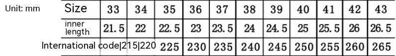 Size: 33, 34, 35, 36, 37, 38, 39, 40, 41, 42, 43