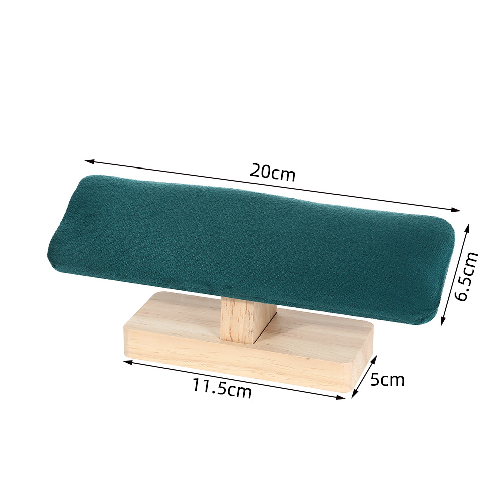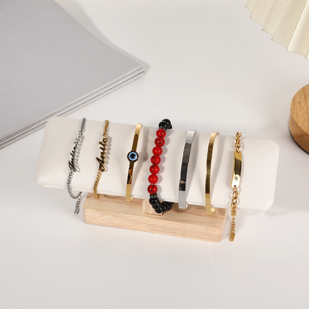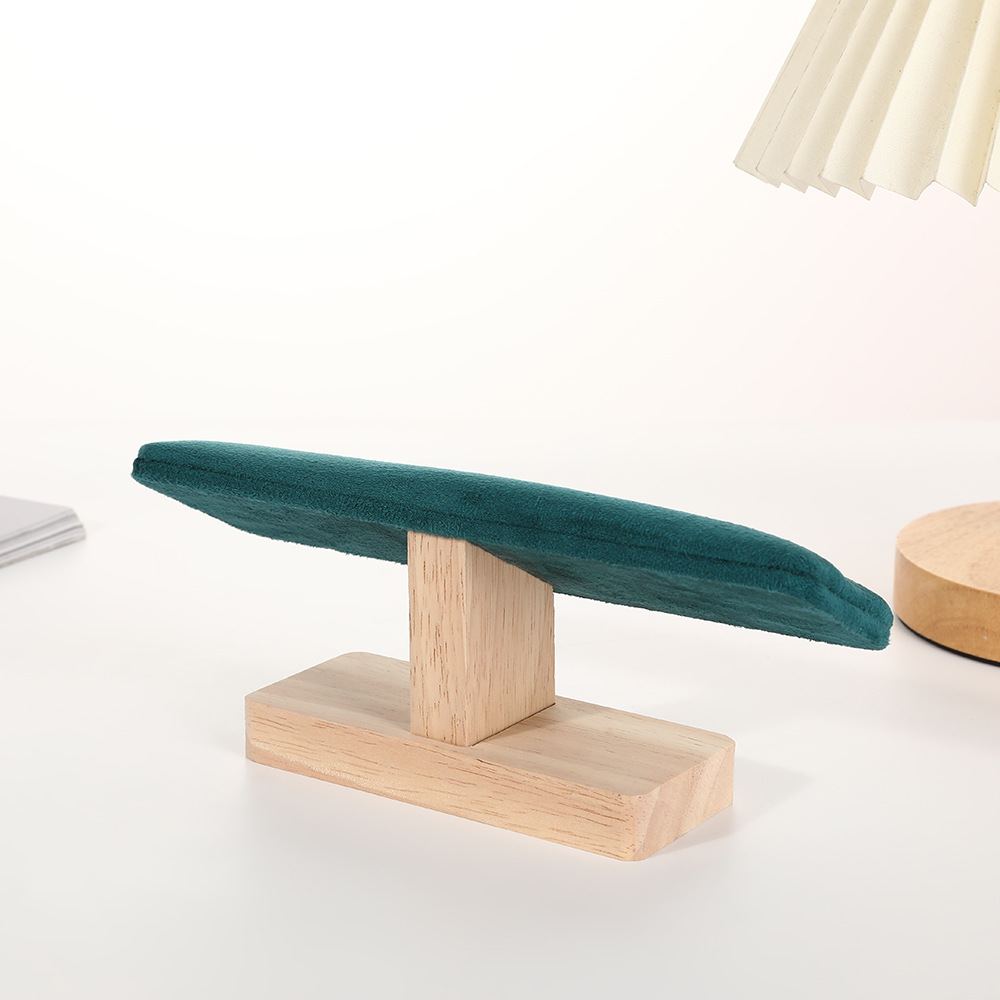 Color: Square bracelet stand with natural wood base and beige velvet, square bracelet stand with natural wood base and cream leather, square bracelet stand with natural wood base and green velvet, square bracelet stand with natural wood base and black leather