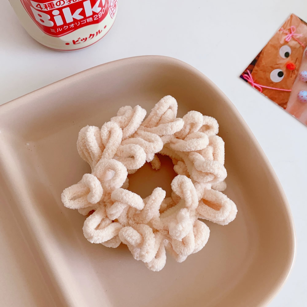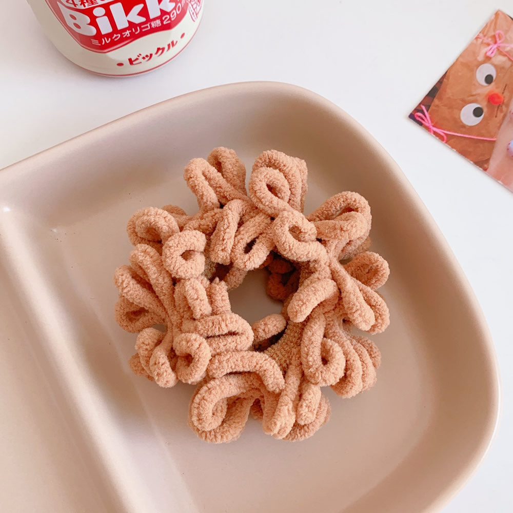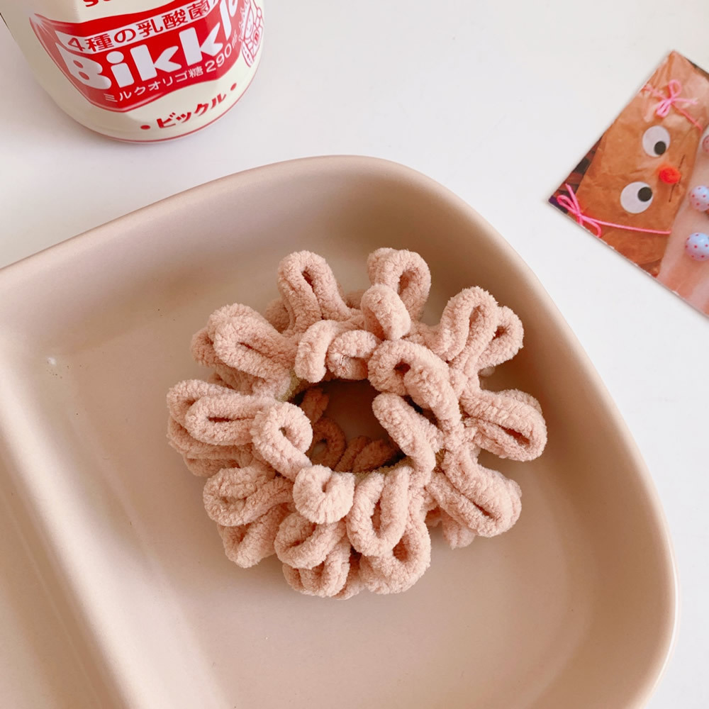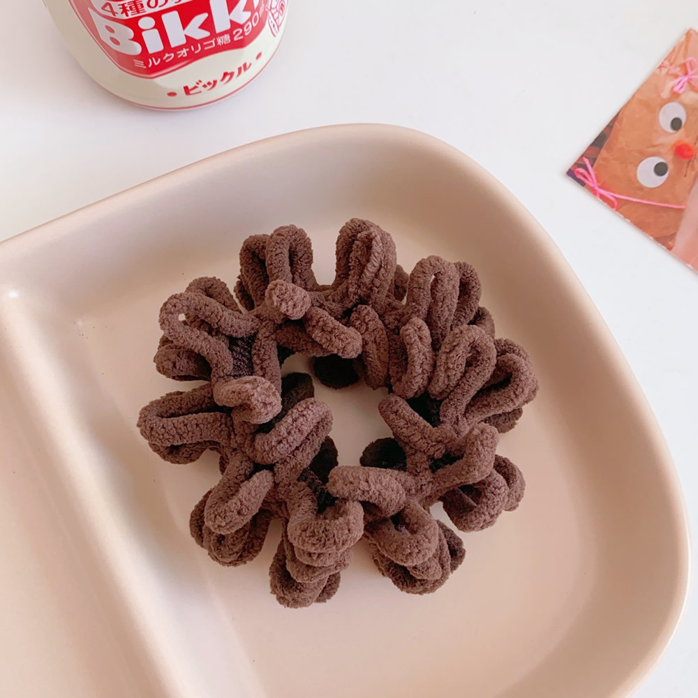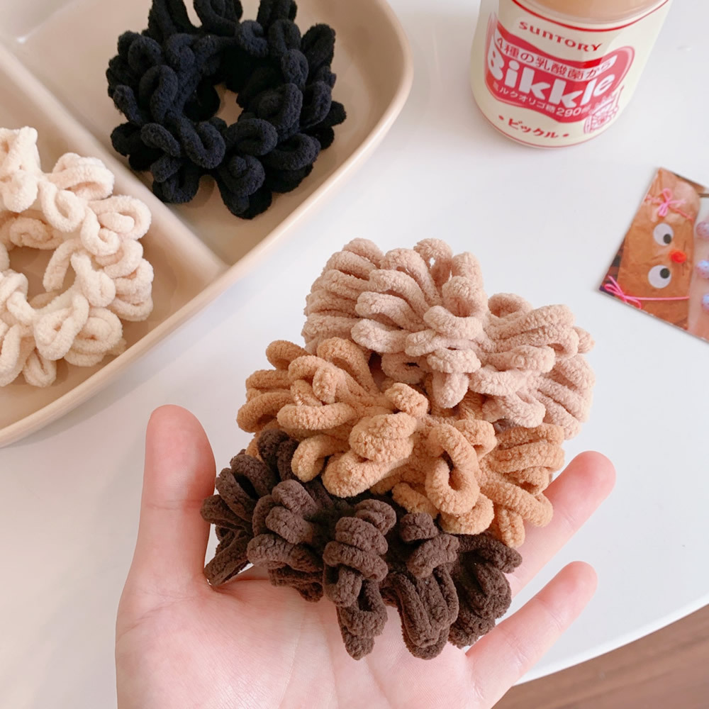 Color; 1#beige plush hair ring, 2#coffee plush hair ring, 3#khaki plush hair ring, 4# milk white plush hair ring, 5# black plush hair ring