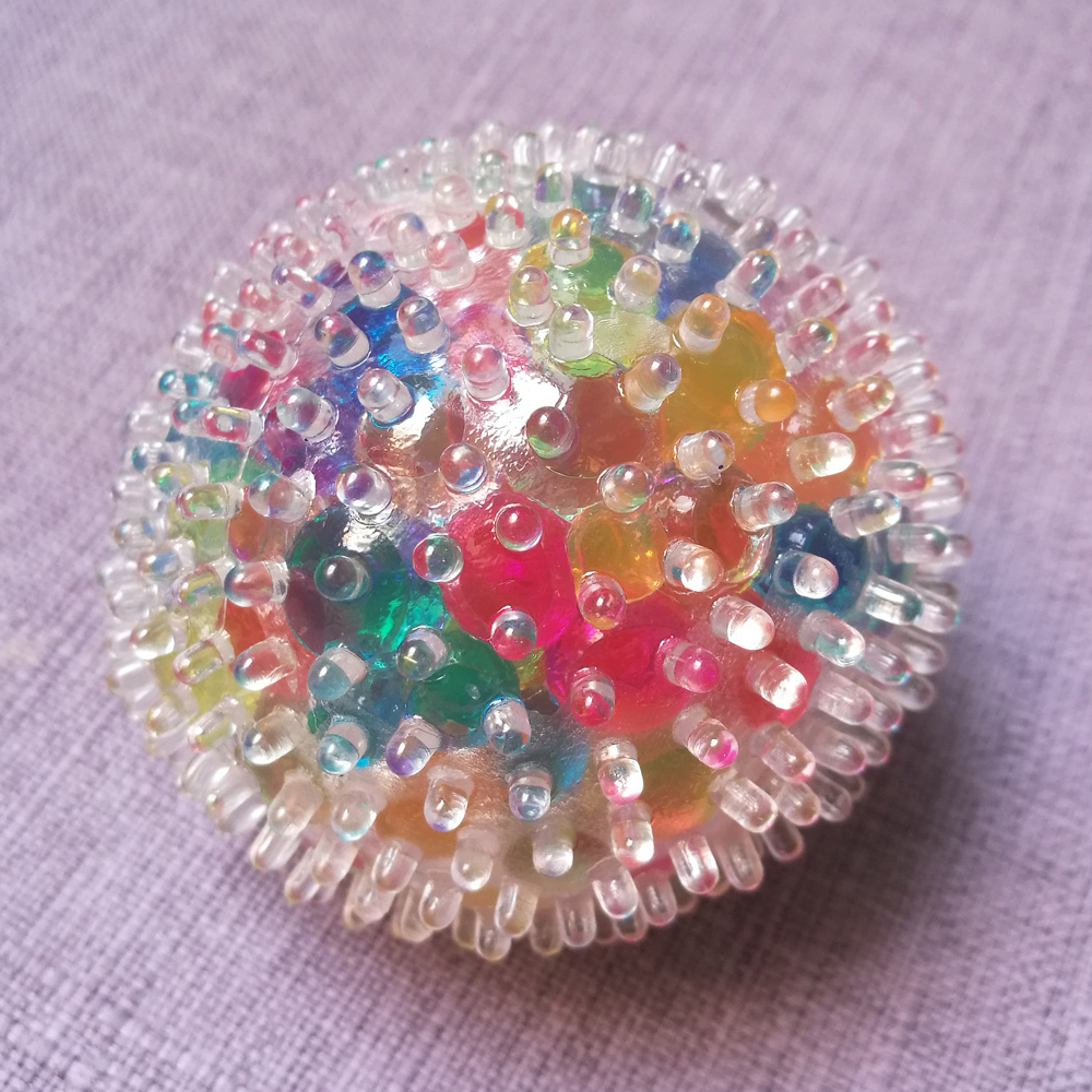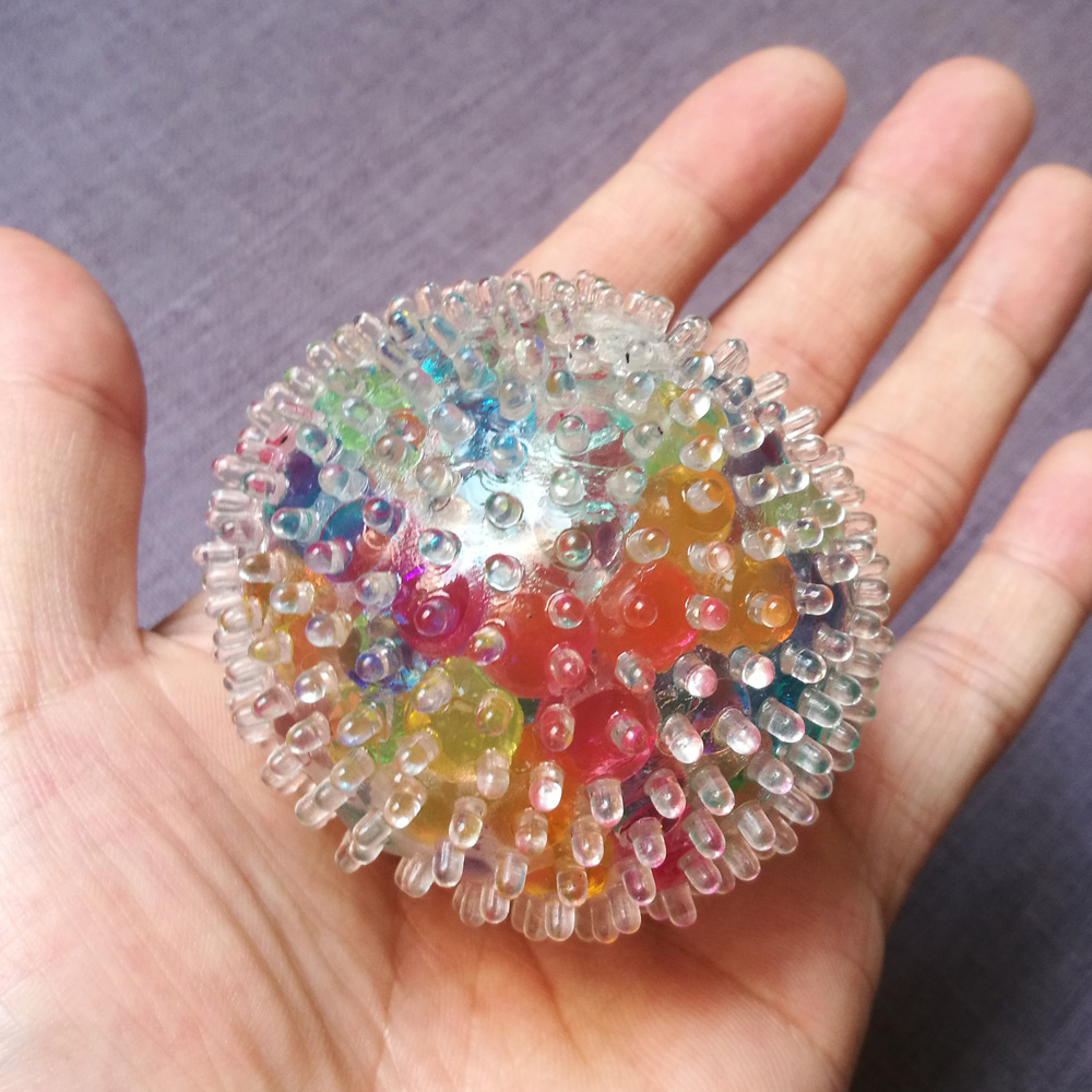 These atomic bead stress balls are a fantastic multi-sensual irritability toy. They are as soft and durable as foam pressure balls, prickly like massage balls, and filled with brittle pearls to produce tactile and auditory responses. Smash them into different shapes, or just roll them in your hands.