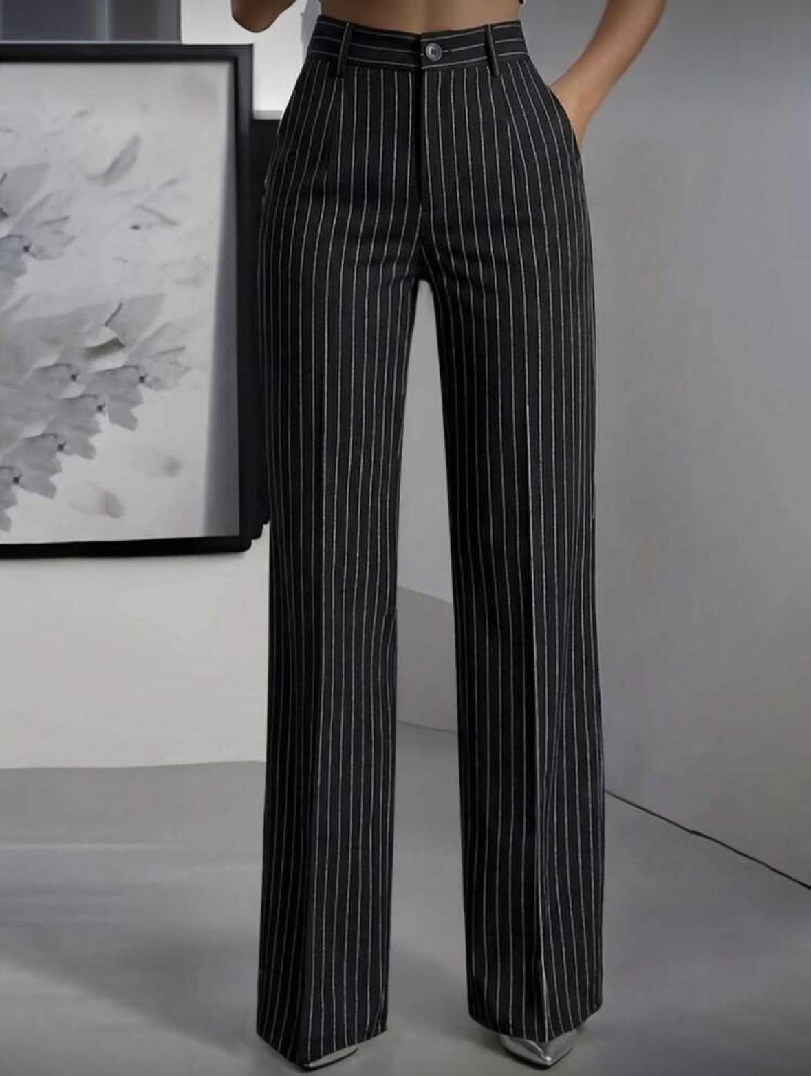 Versatile And Minimalist Striped High Waisted Straight Leg Women's Pants