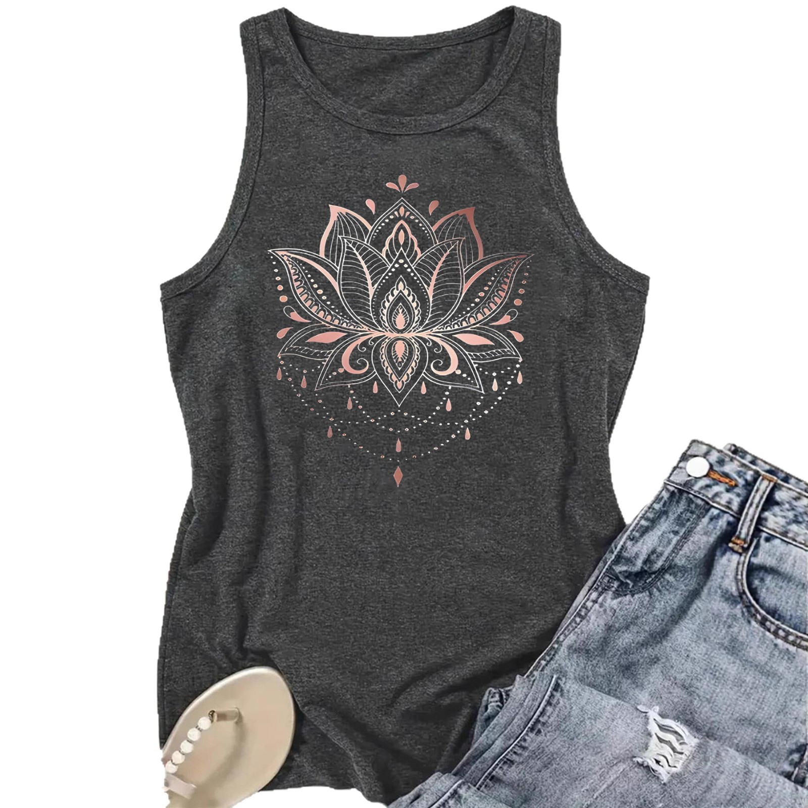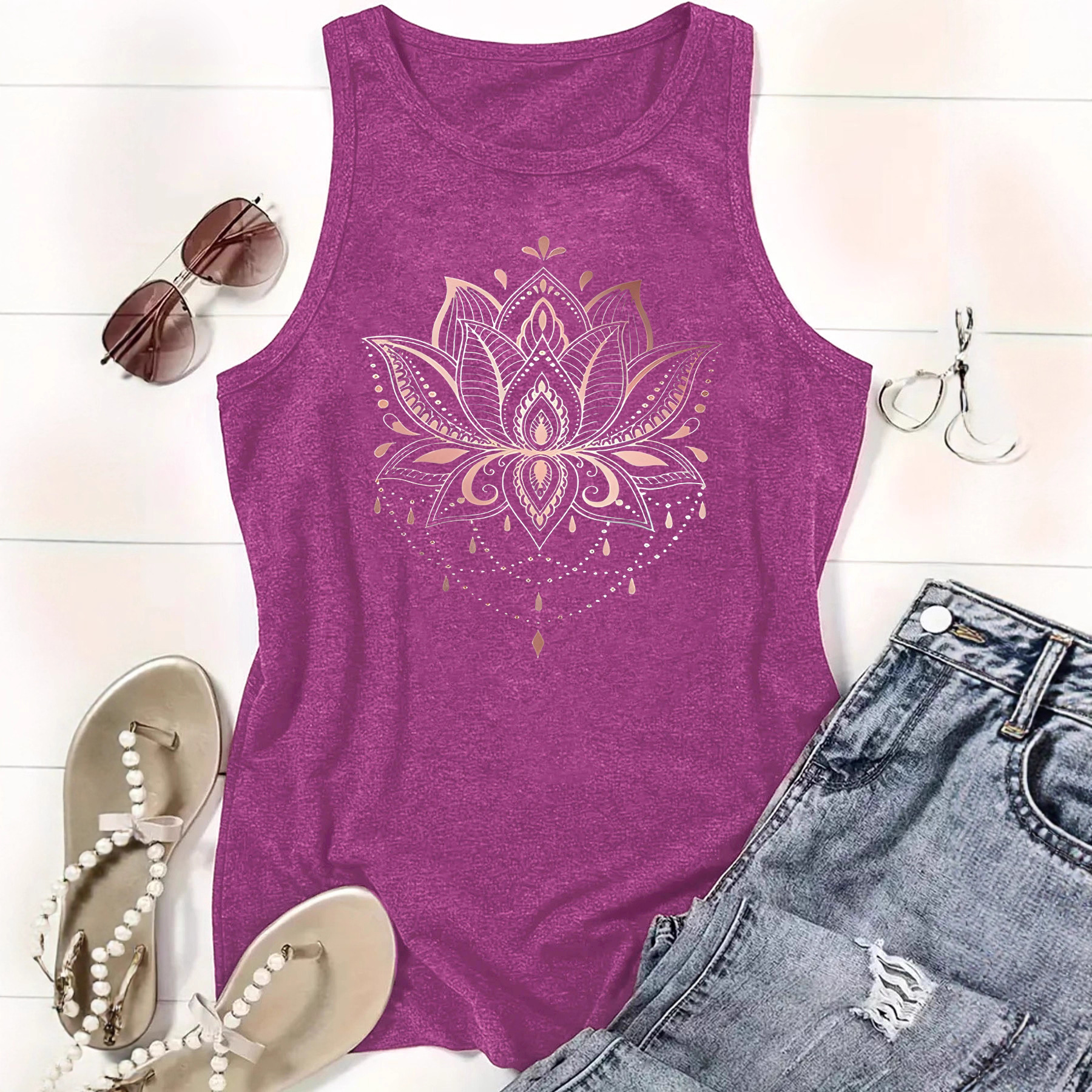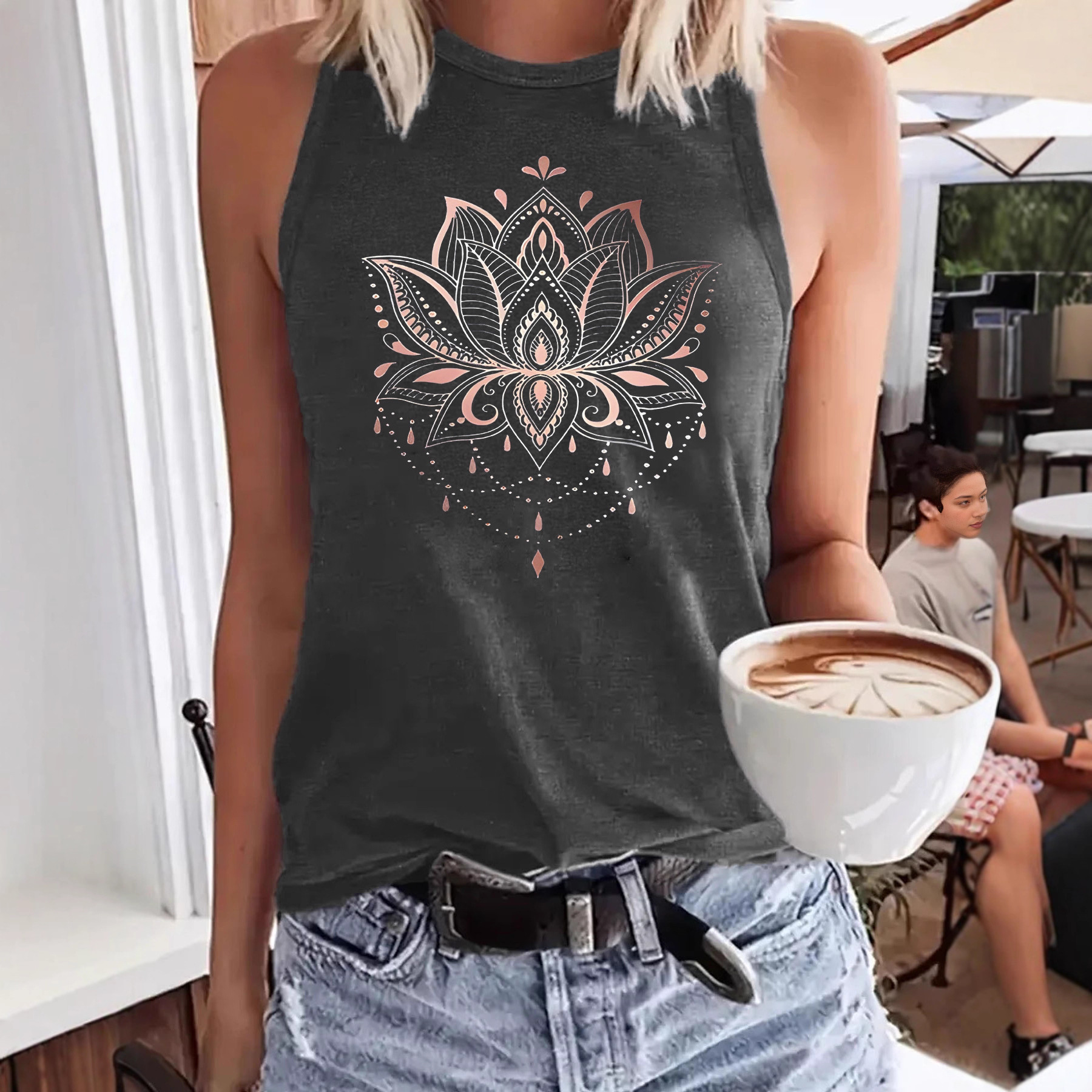 Versatile, Comfortable Soft Tank Top With A Lotus Print
