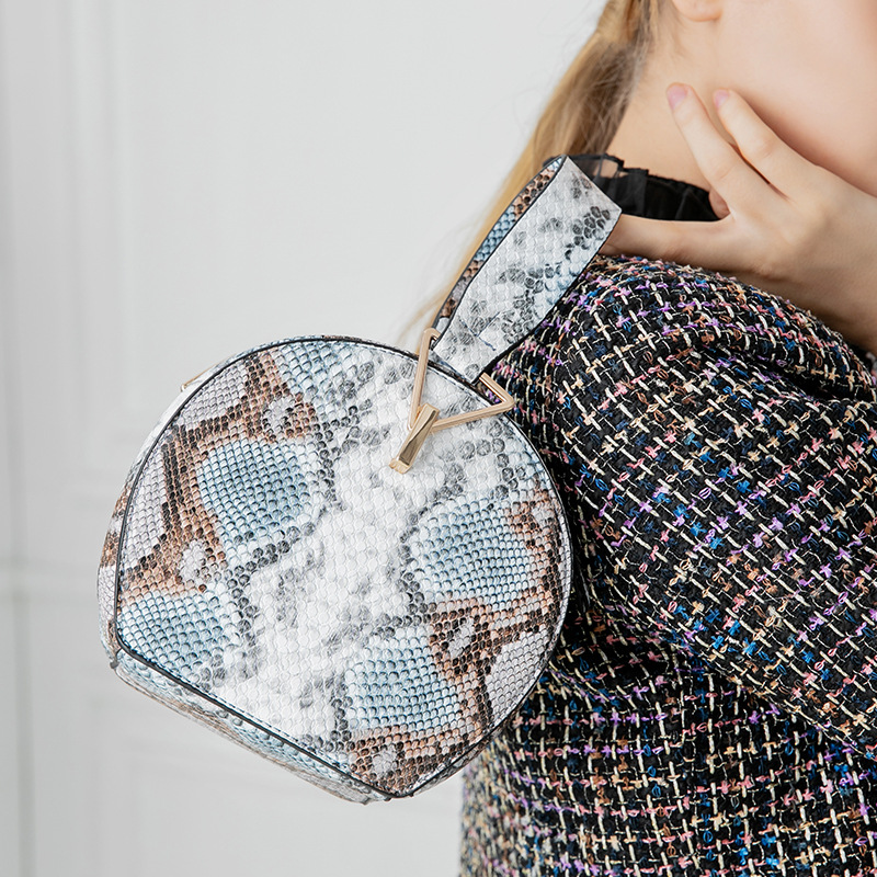 Style: Women's handbagFabric texture: PolyurethaneLining texture: Polyester solderBag shape: round