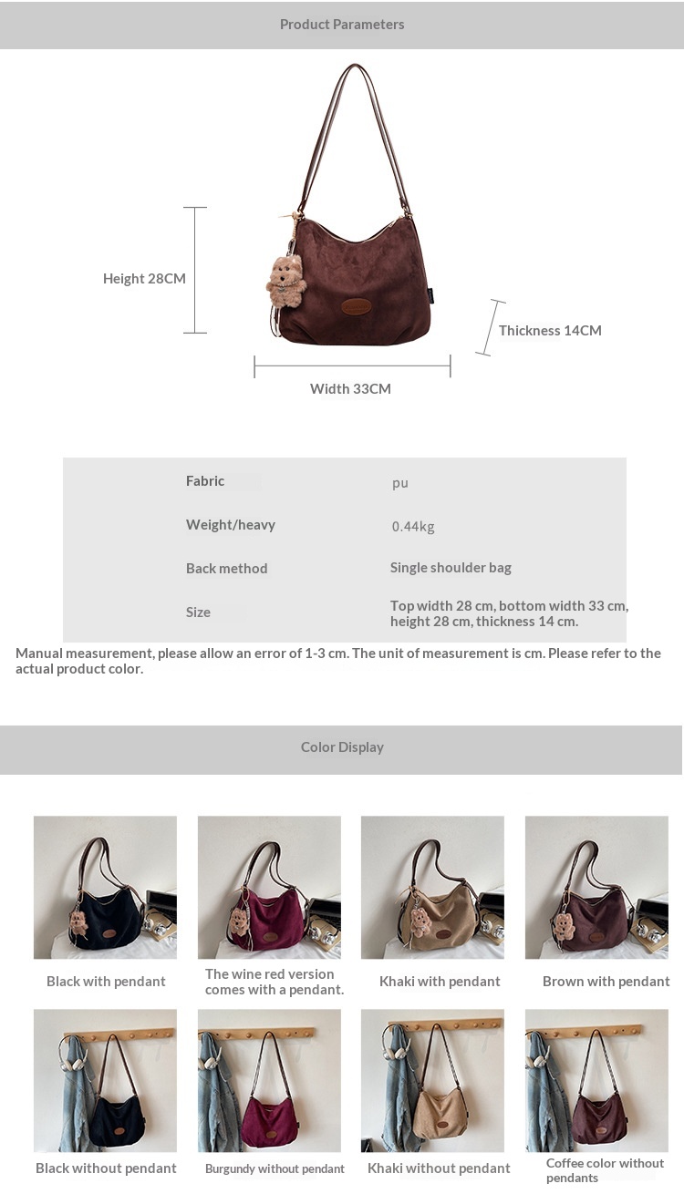 Colors: Black without pendant, Burgundy without pendant, Khaki without pendant, Coffee without pendant