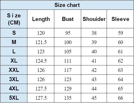 Sizes: S, M, L, XL, XXL, 3XL, 4XL, 5XL
