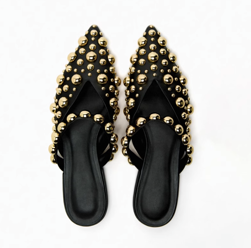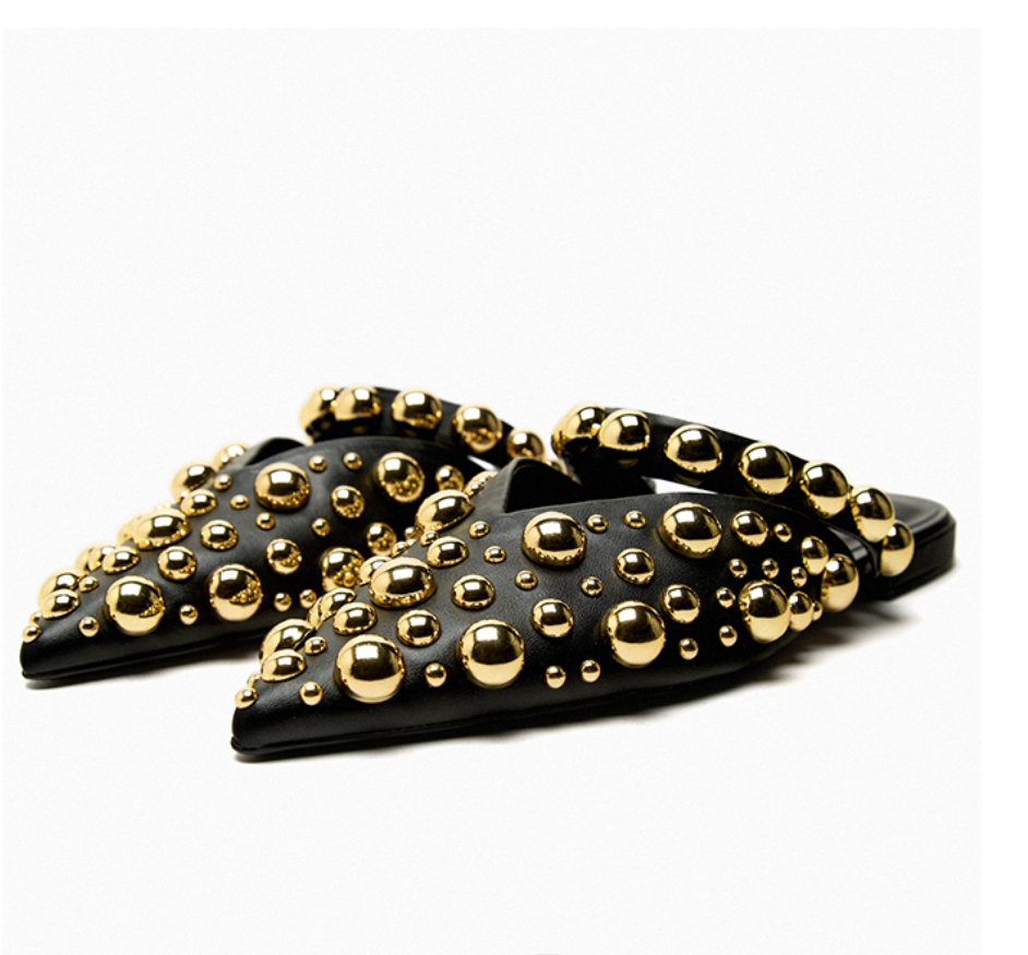 Versatile Rivet Pointed Toe Sandals Flat Toe