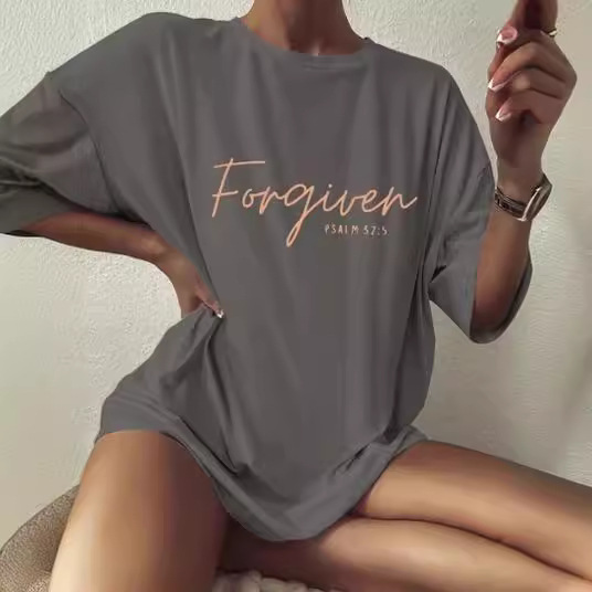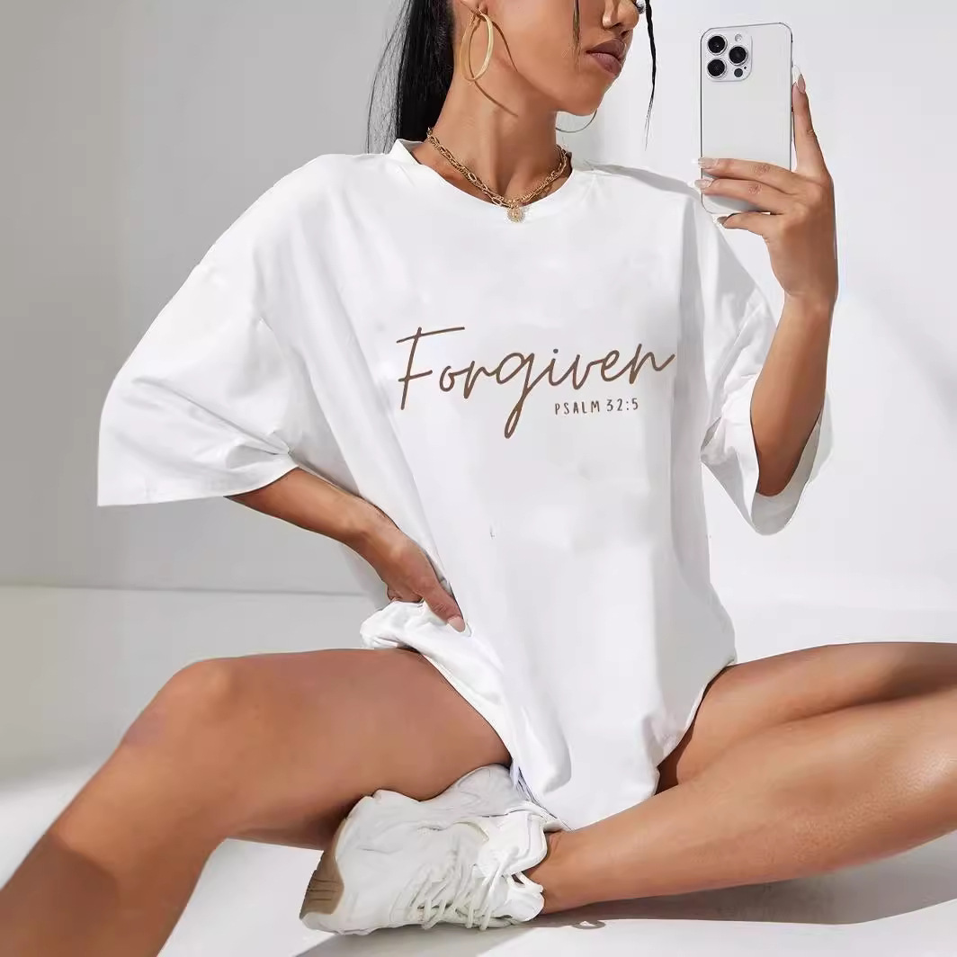 Versatile Simple Letter Print Loose Women's Cotton T-shirt