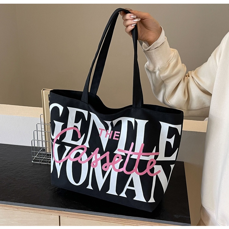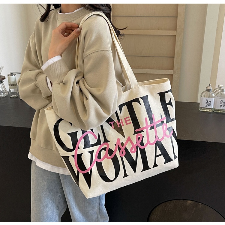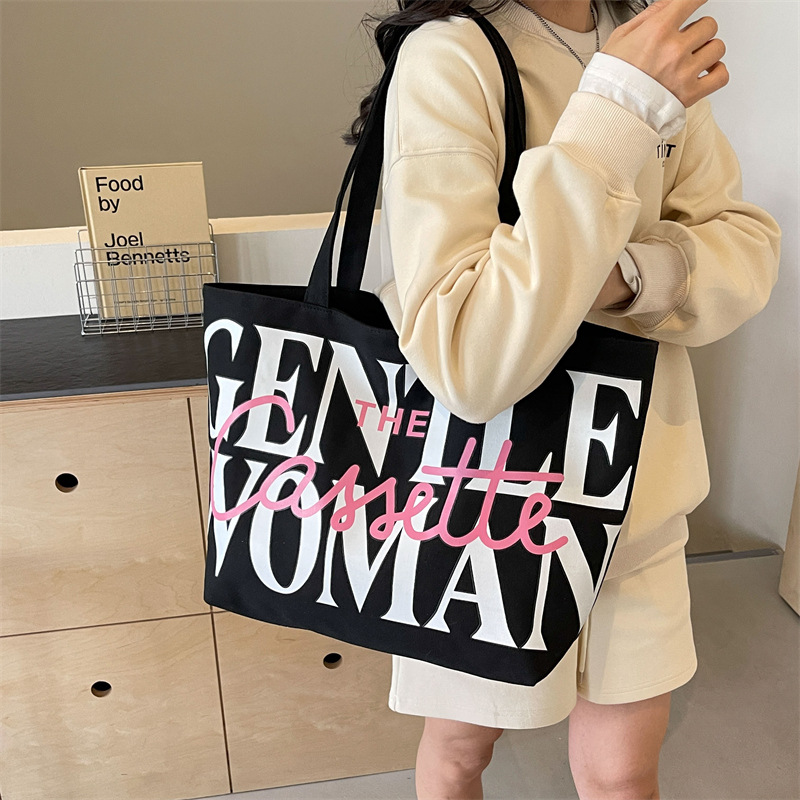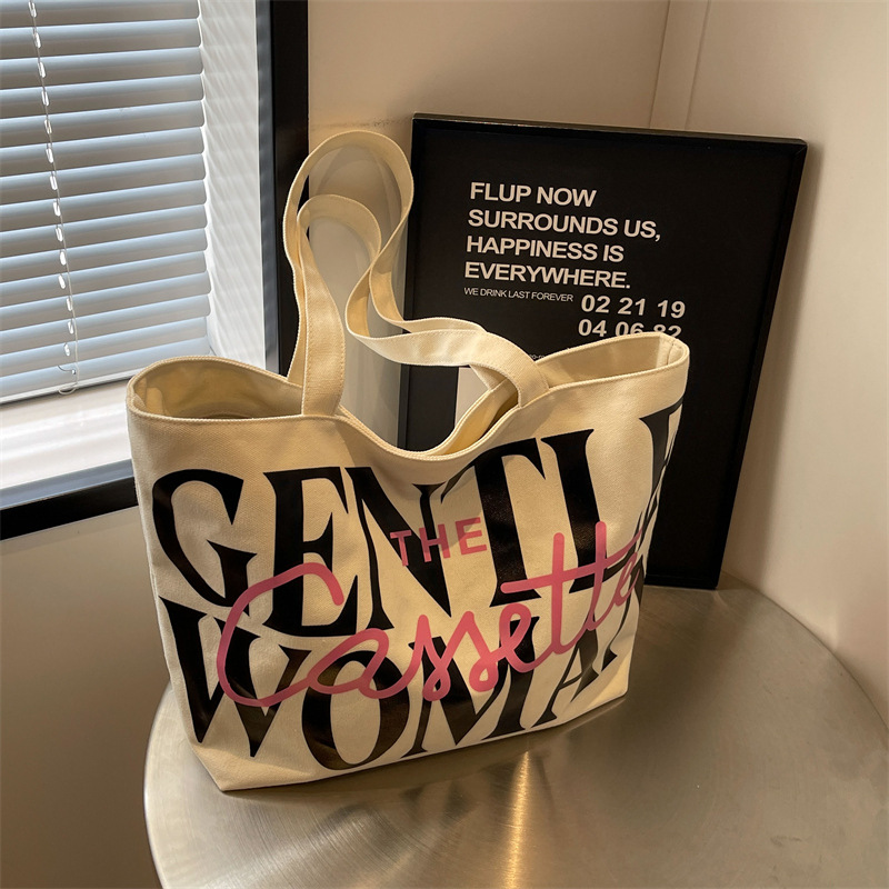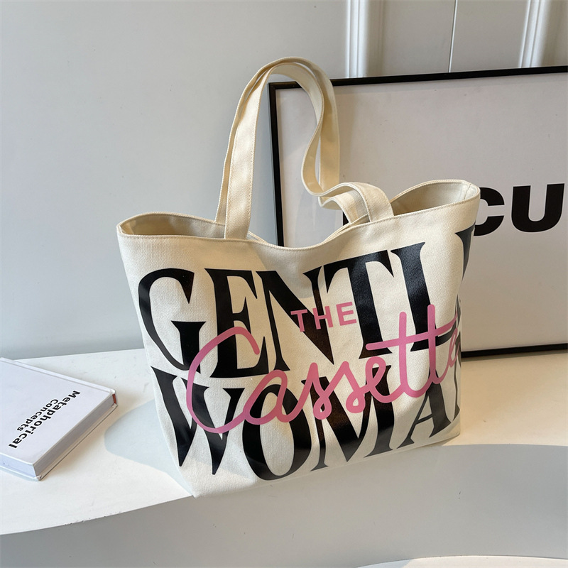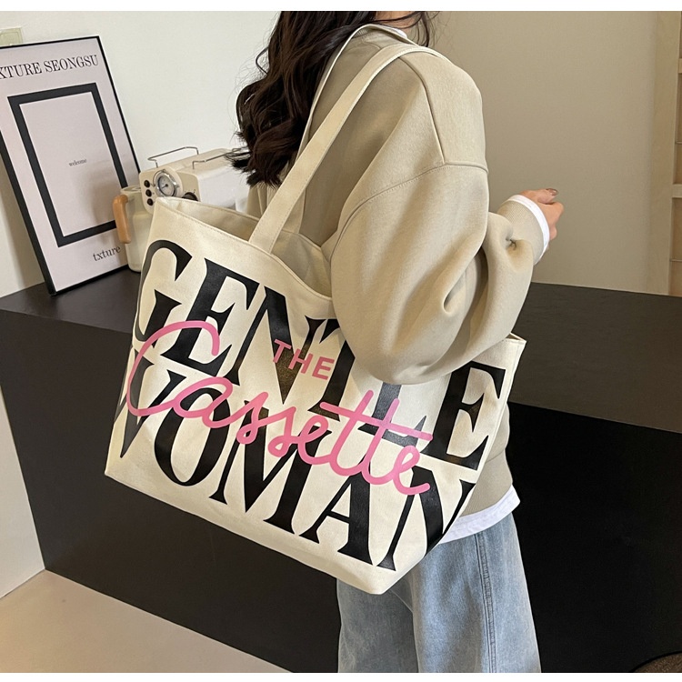 Versatile Texture One-shoulder Large Letter Painted Canvas Bag
