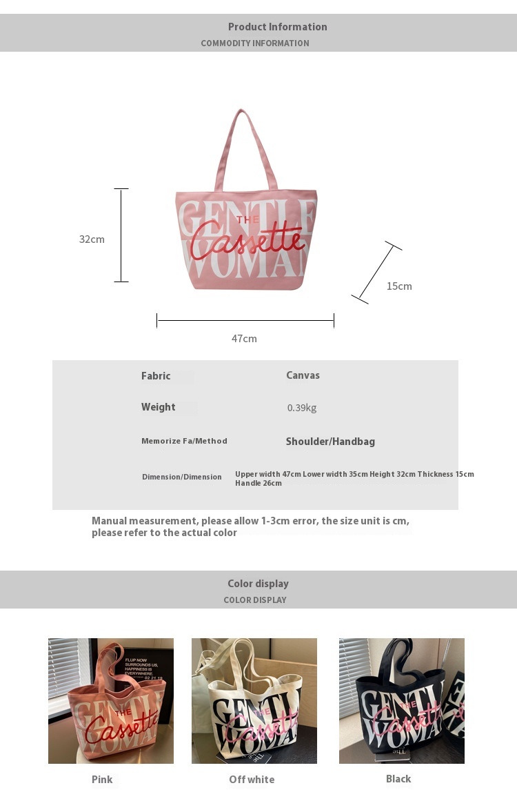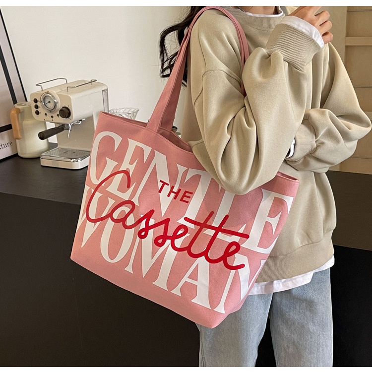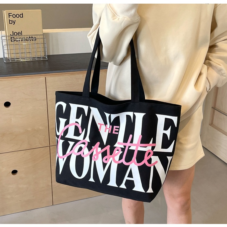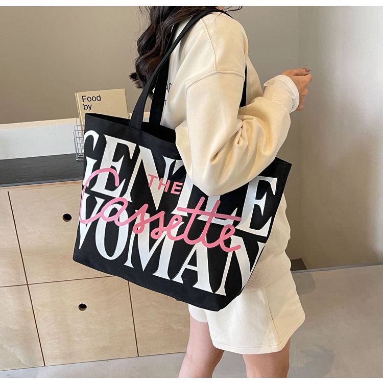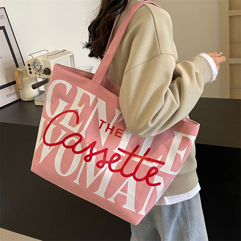 Versatile Texture One-shoulder Large Letter Painted Canvas Bag
