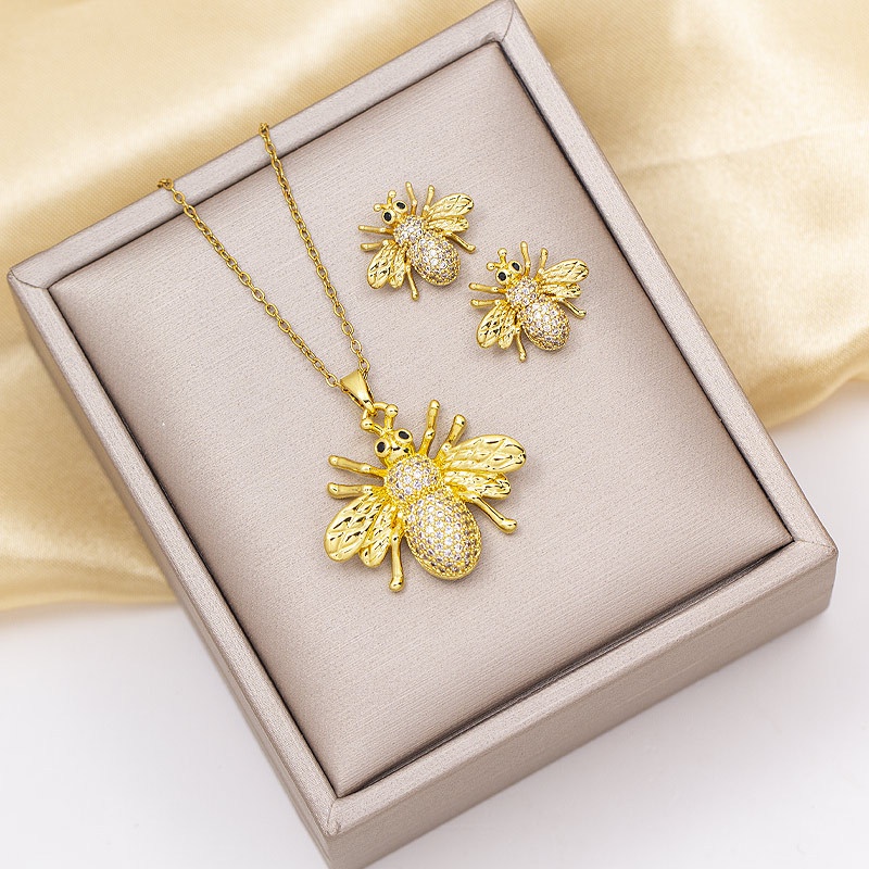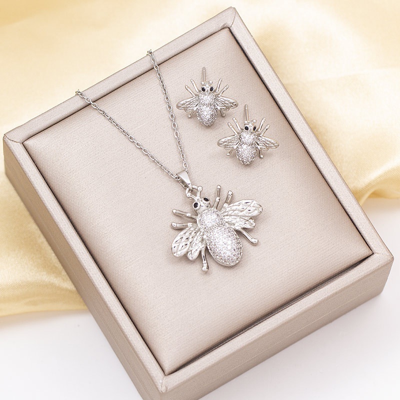 Color: TZ-8357 gold full diamond bee necklace, TZ-8357 gold full diamond bee ear studs, TZ-8357 gold full diamond bee suit, TZ-8357 silver full diamond bee necklace, TZ-8357 silver full diamond bee ear studs, TZ-8357 silver full diamond bee suit
