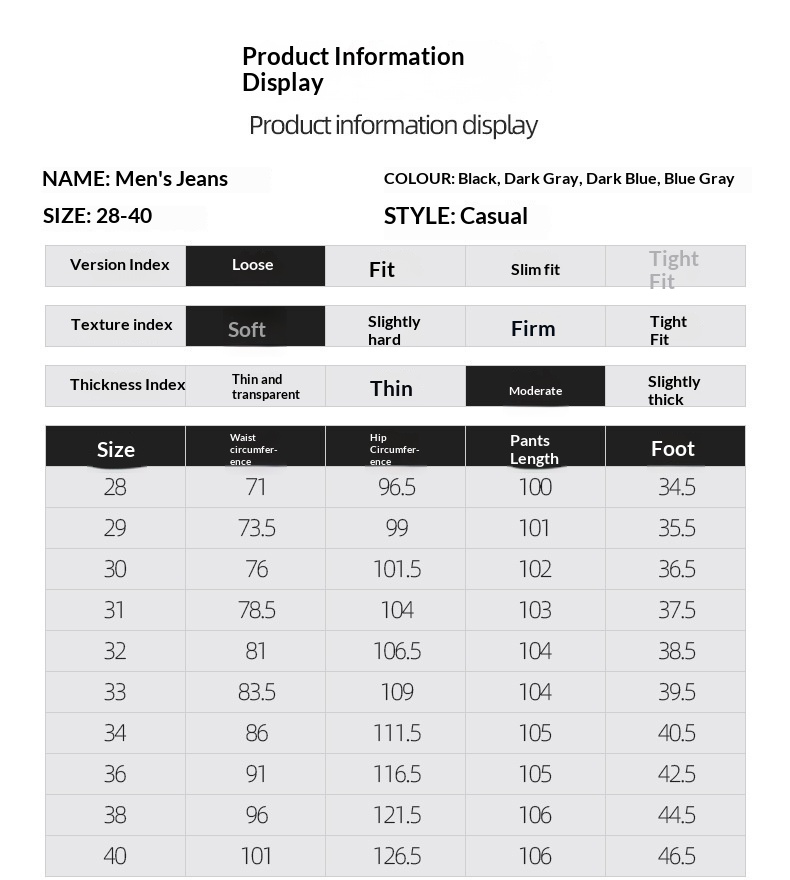 Sizes: 28, 29, 30, 31, 32, 33, 34, 36, 38