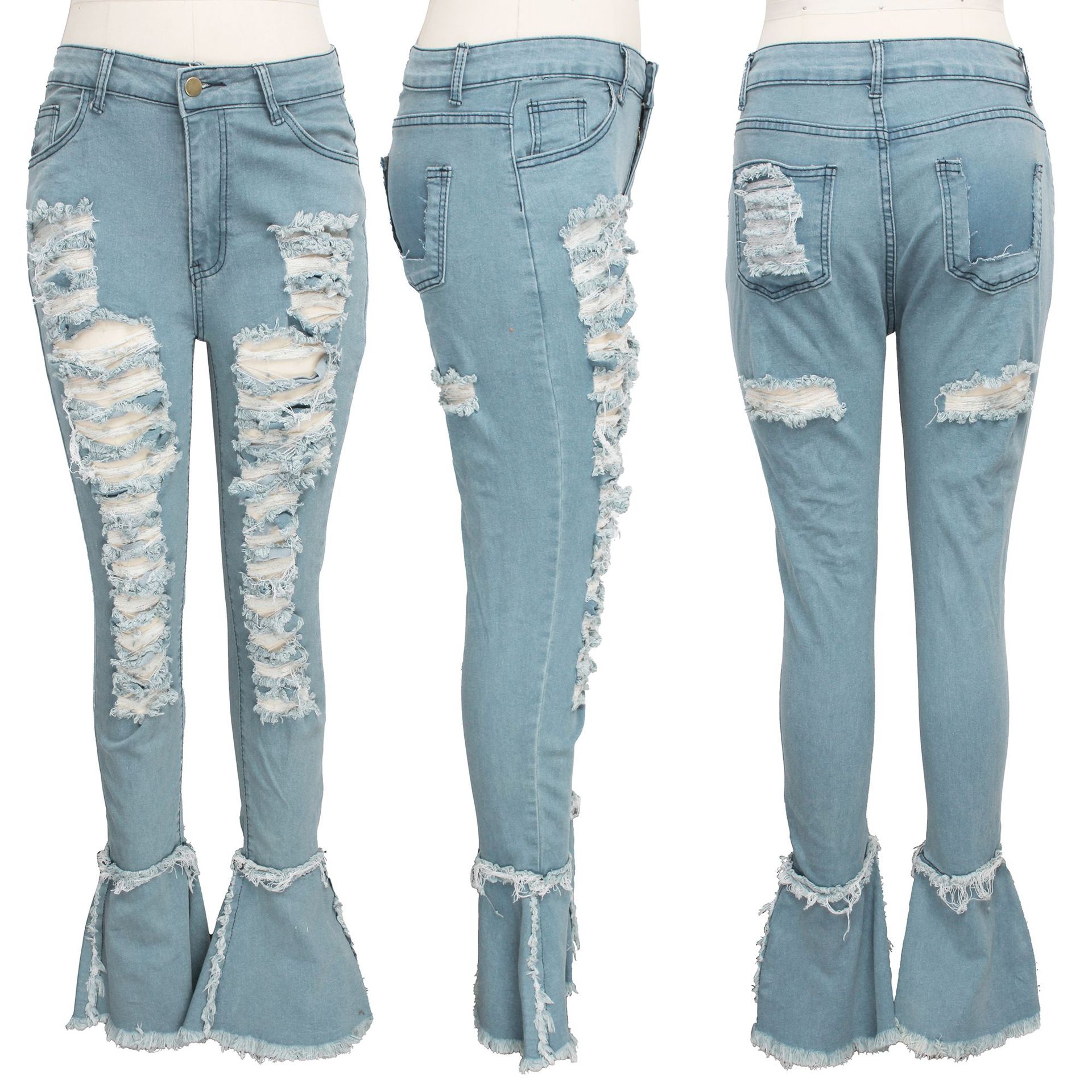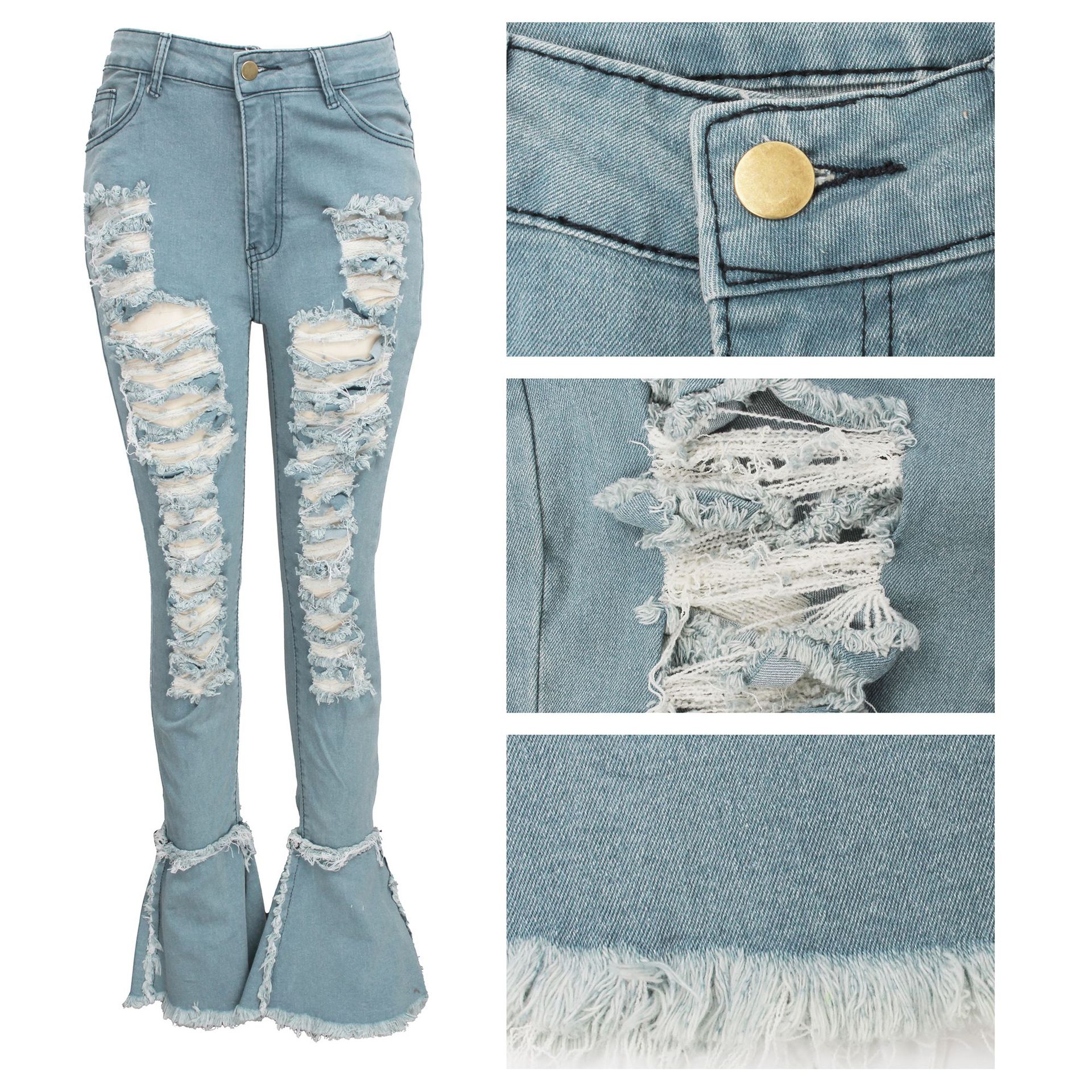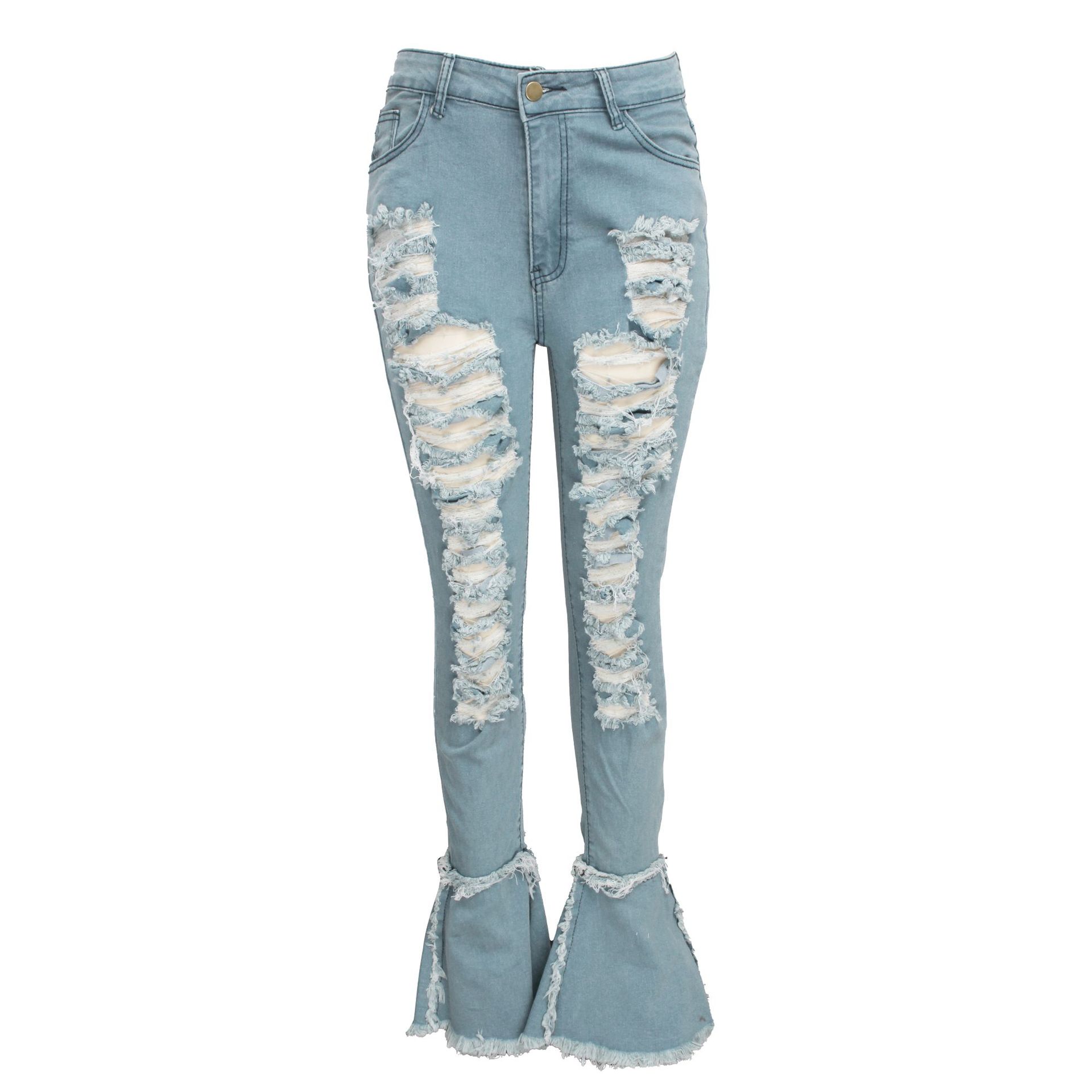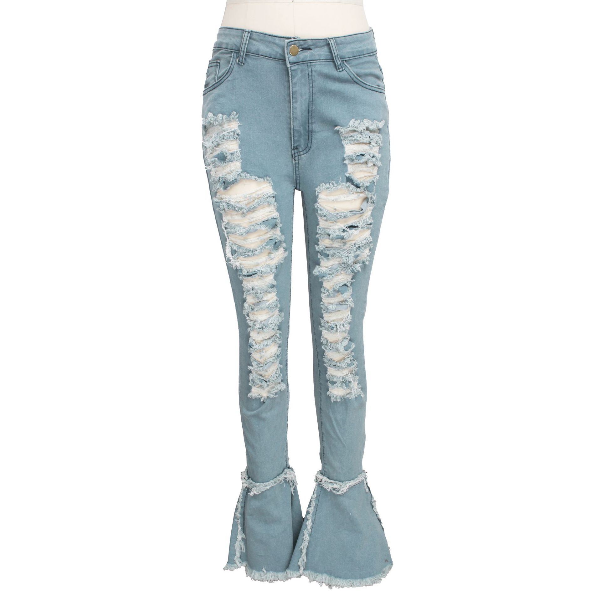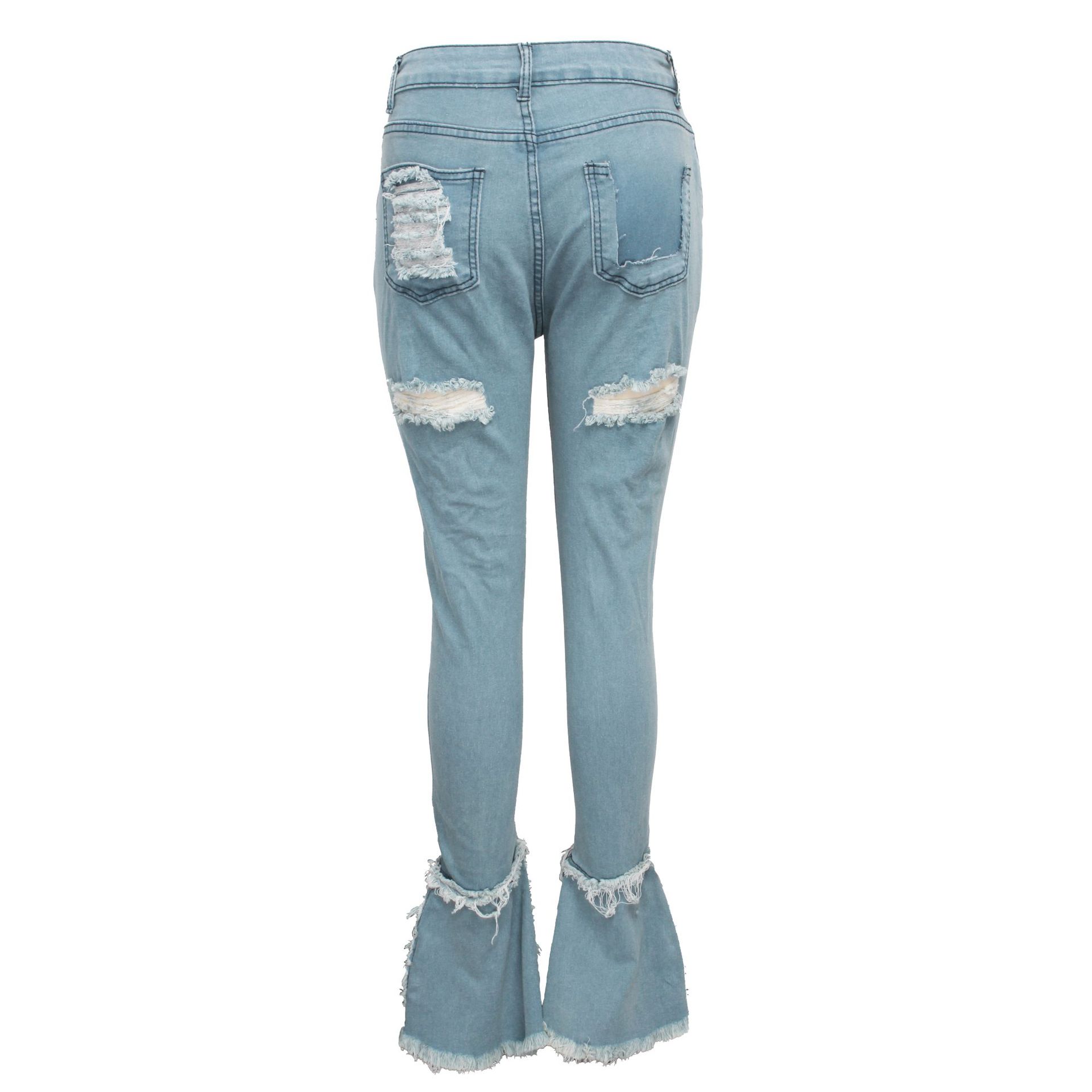 Versatile Washed Ripped Trousers Stitching Micro Flared Pants