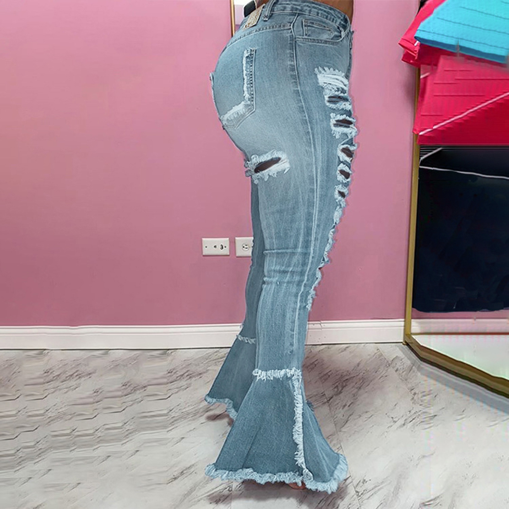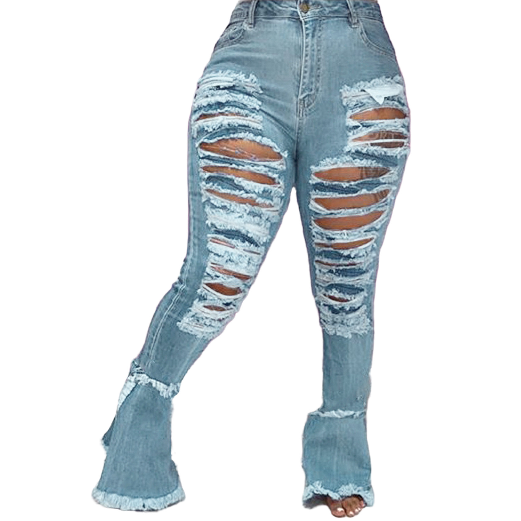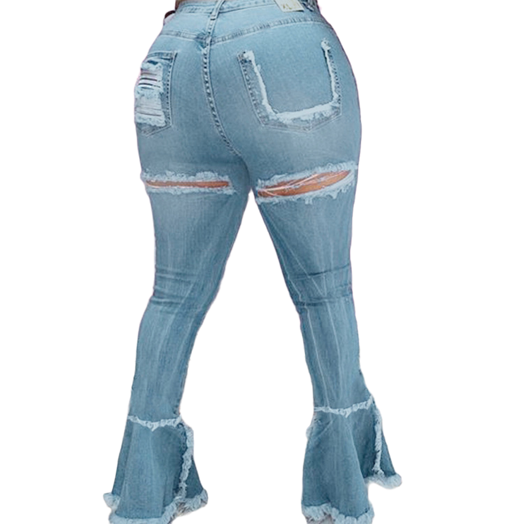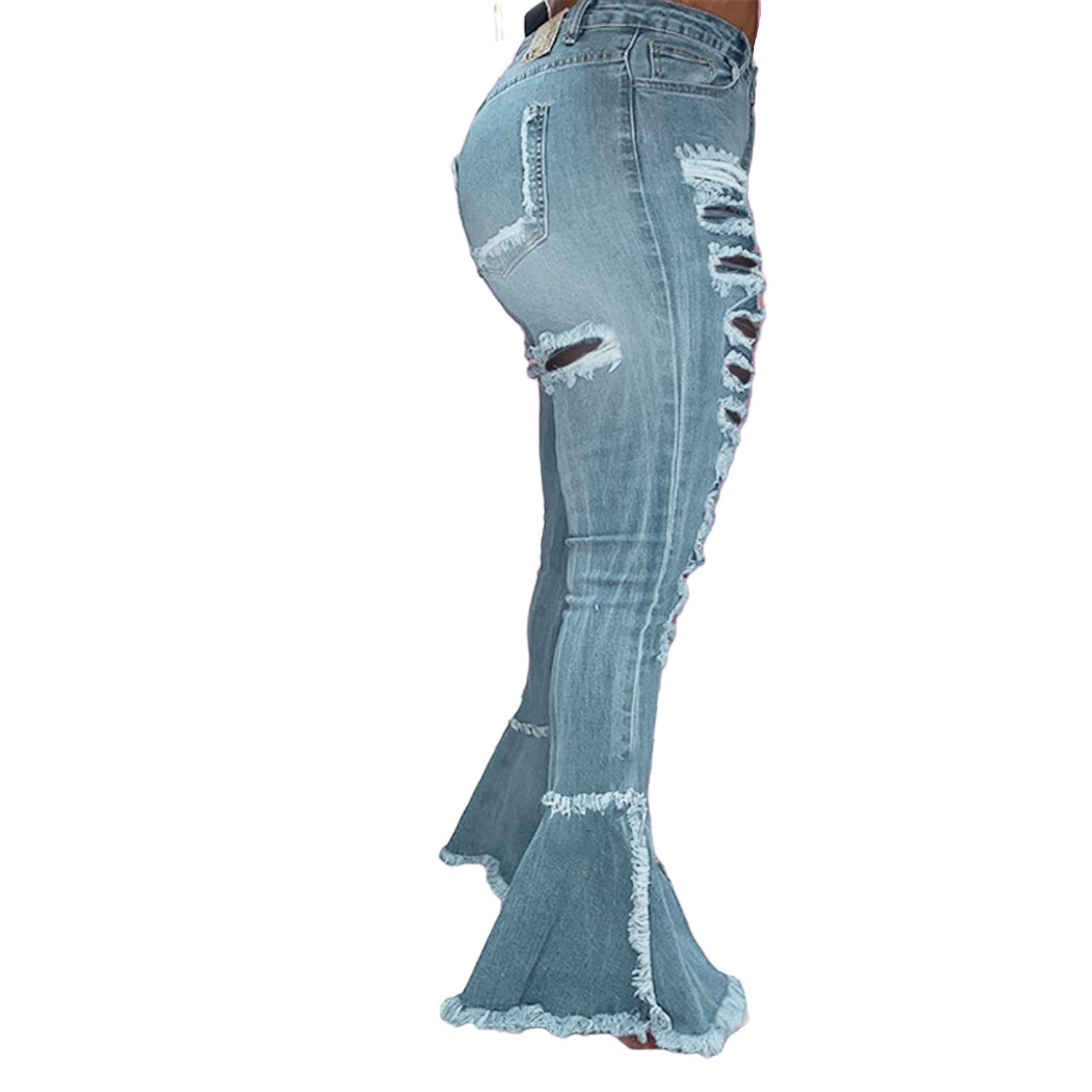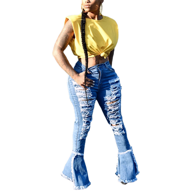 Versatile Washed Ripped Trousers Stitching Micro Flared Pants