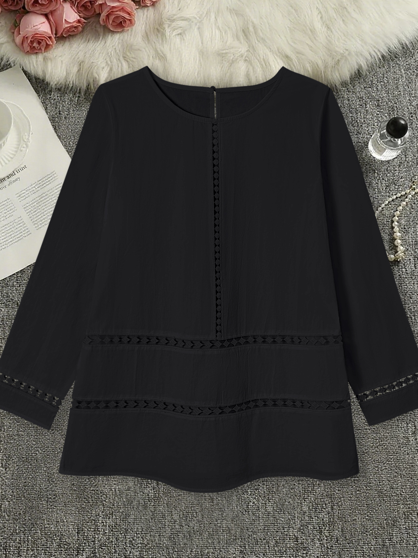 Trendy elements: Solid color, hollow-out design