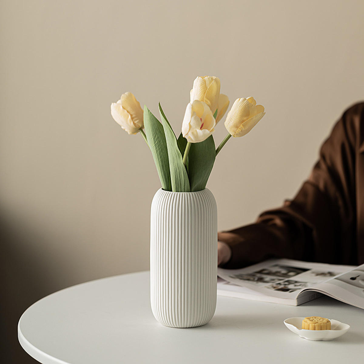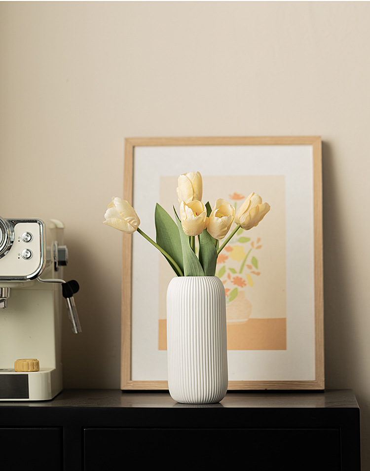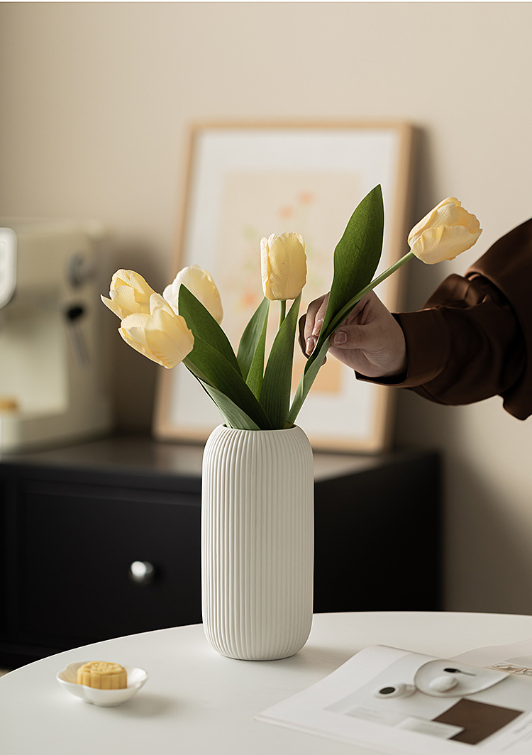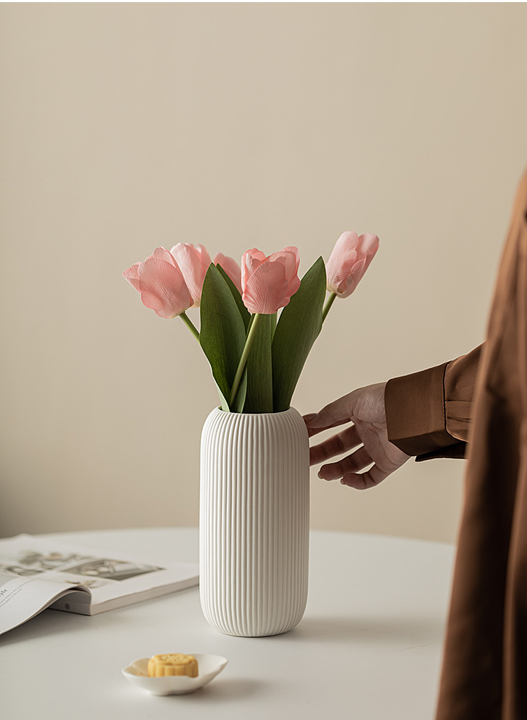 Product information:Color: white vertical line vaseMaterial: CeramicStyle: European style