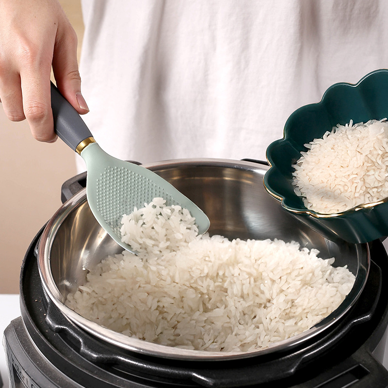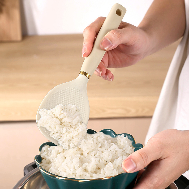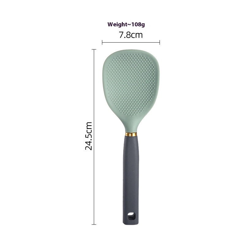 Product information:Color: green, white Specification: square handle Golden Circle spoon Function: Rice Material: Silicone