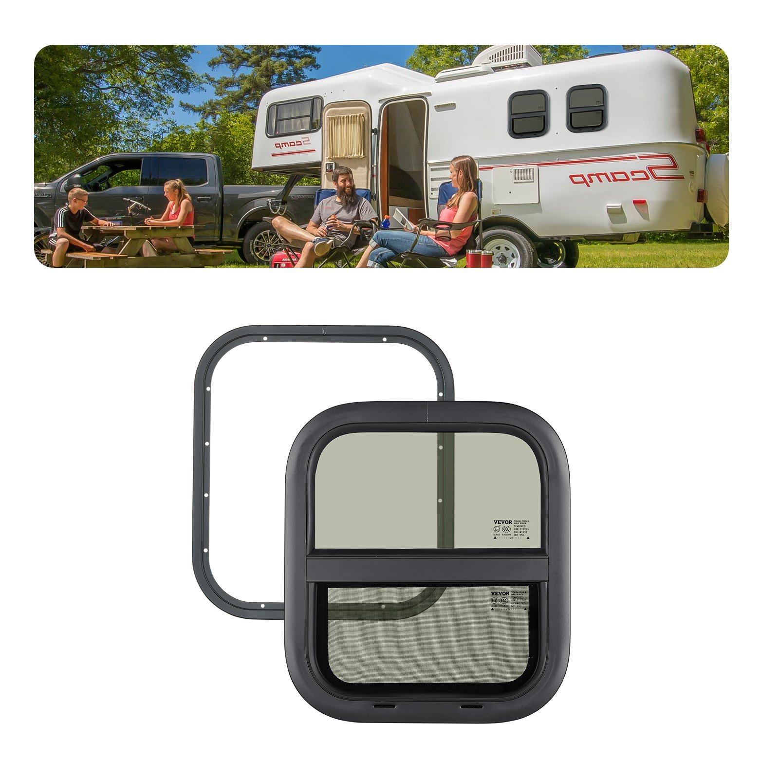 Vertical RV Window, 14" W X 16" H Tinted Sliding RV Window With Net Screen & Trim Ring, Fit 15/16" - 1 3/4" Thickness Wall, RV Window Replacement For Teardrop Cargo Trailer Camper, DOT Approved