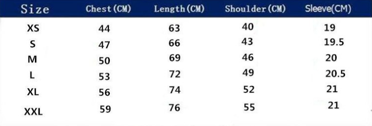 Size: XS, S, M, L, XL, XXL