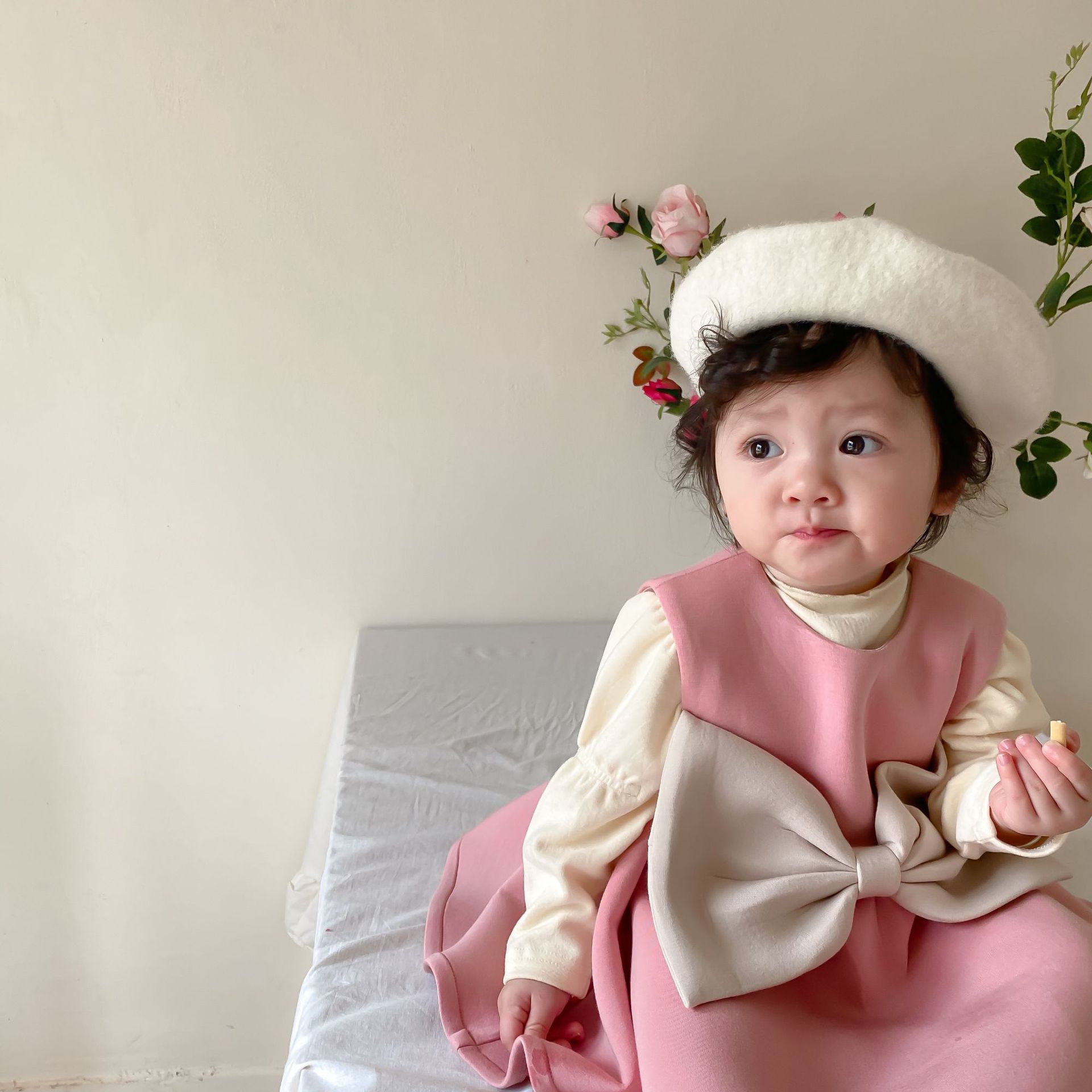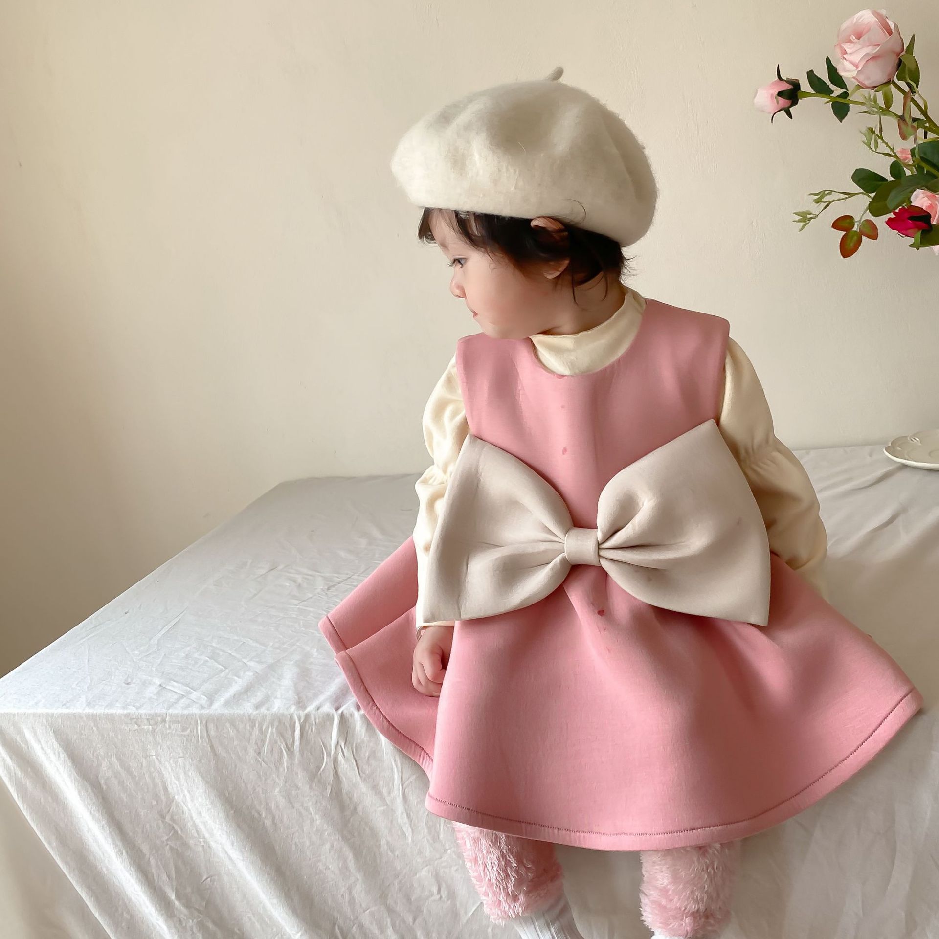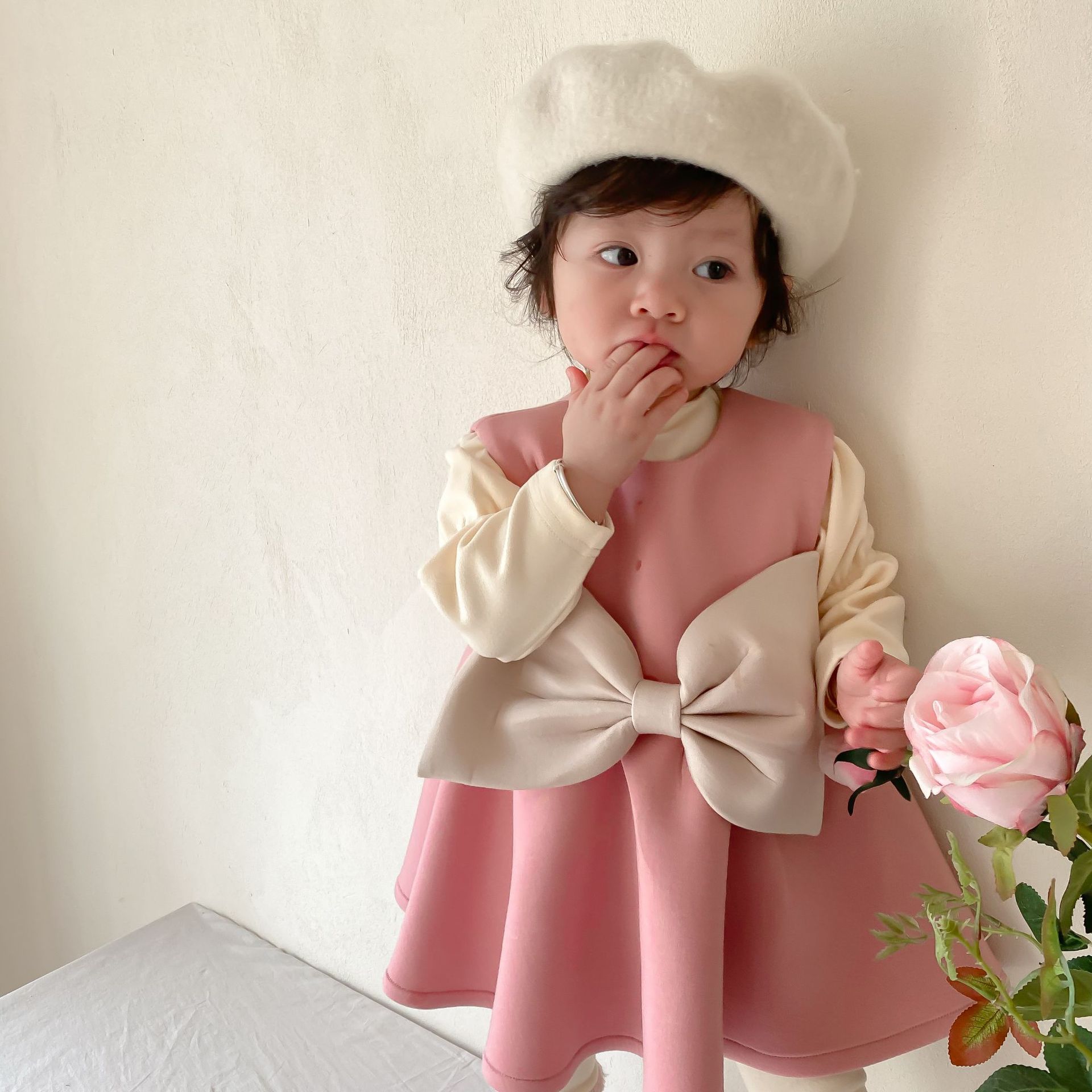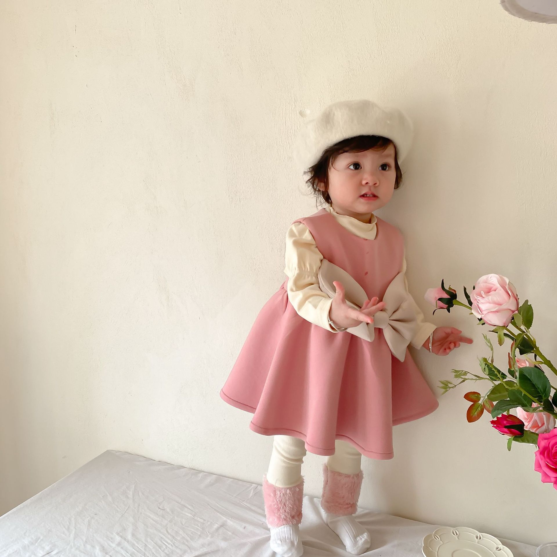 Color: pink skirt, bottoming shirt, pink pants