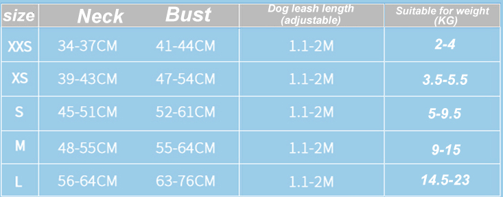 Specifications (length * width): XS, S, M, L, XL, XXL