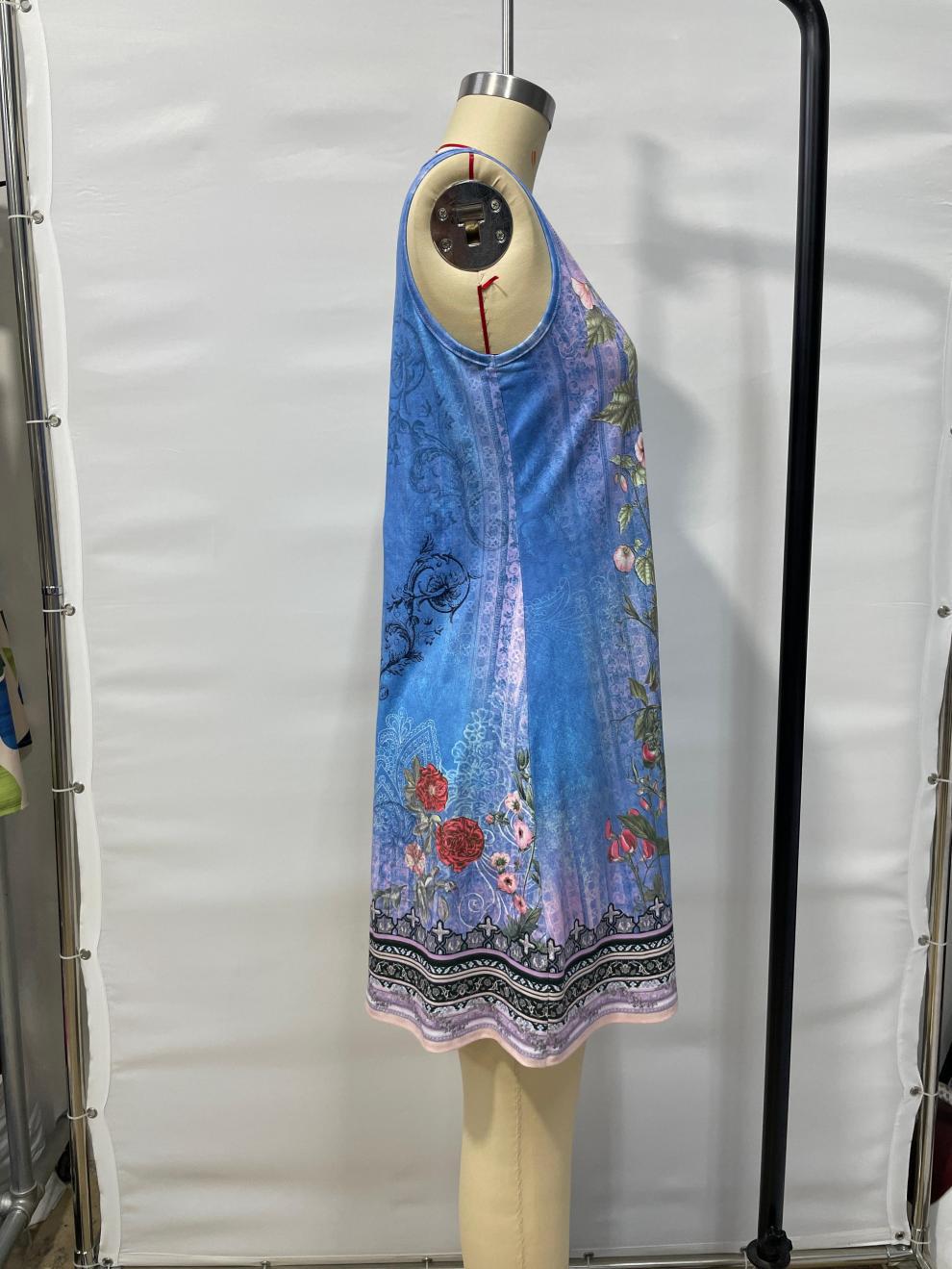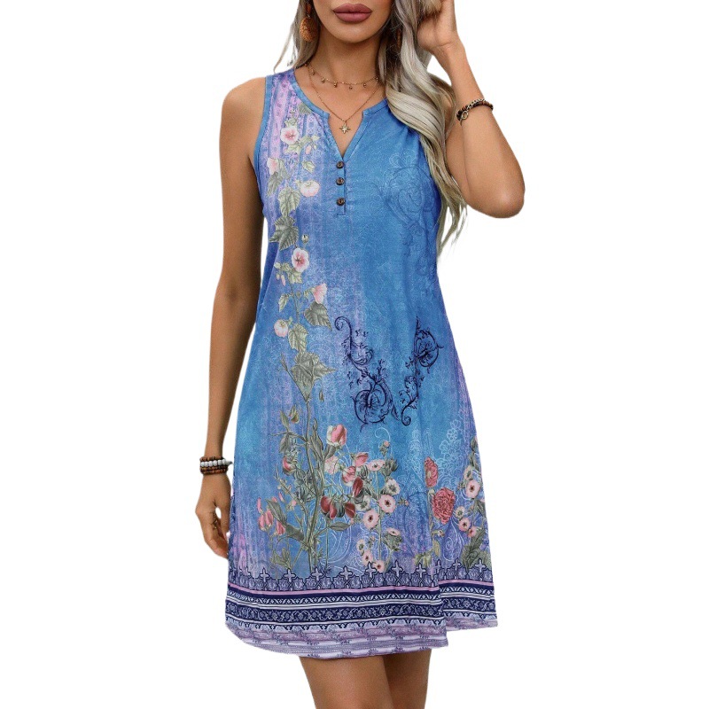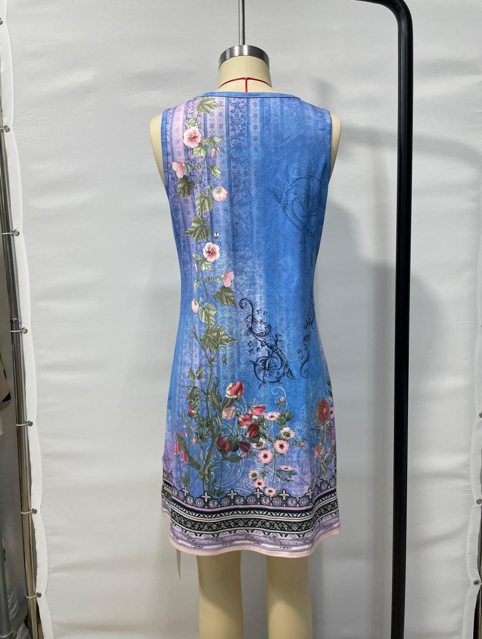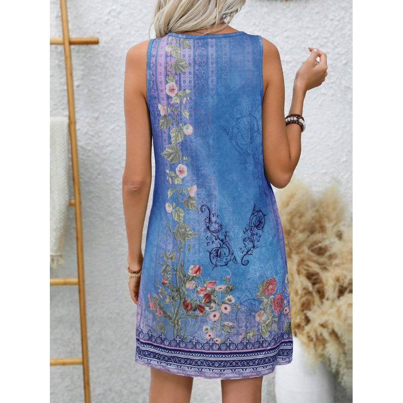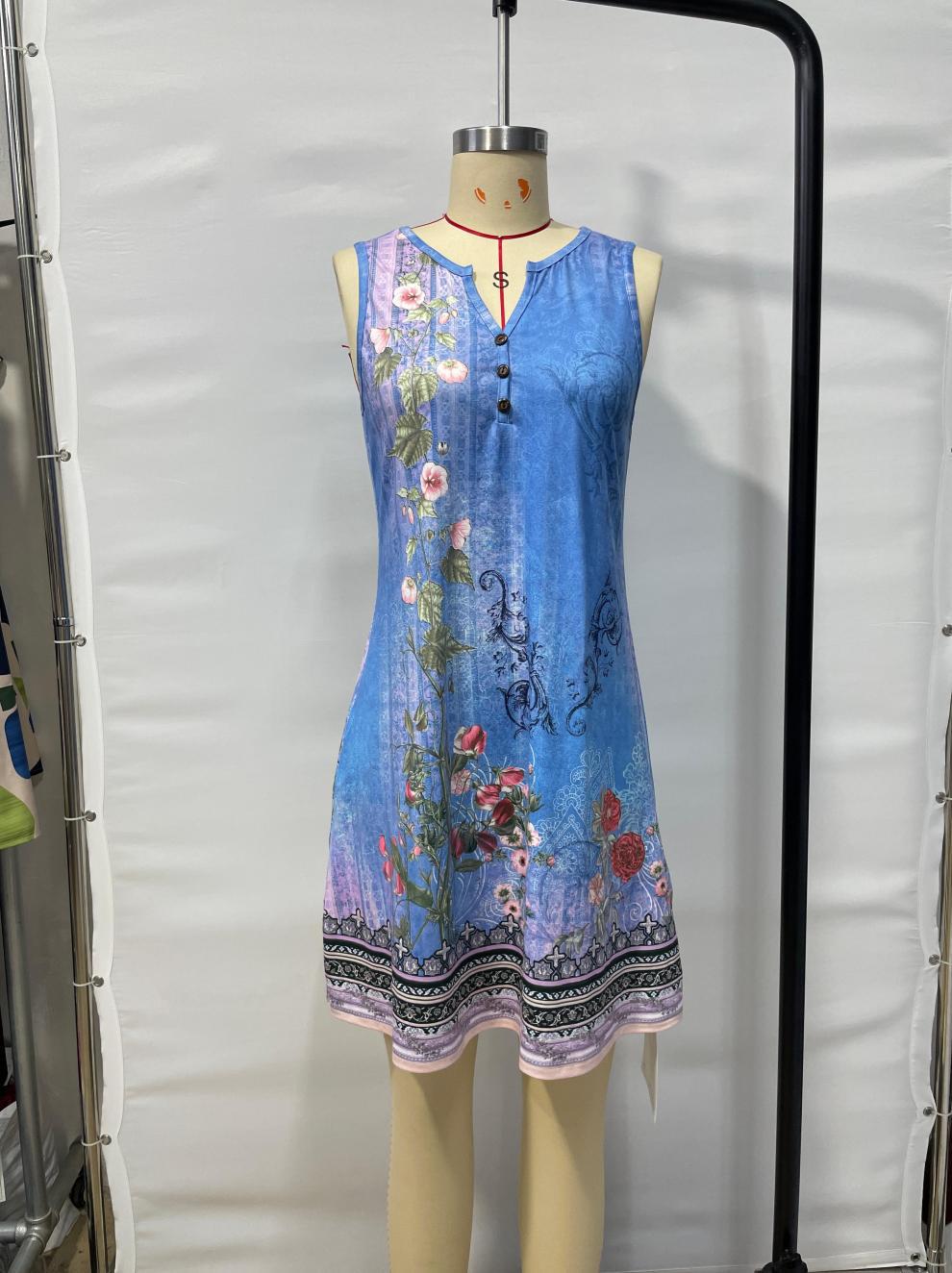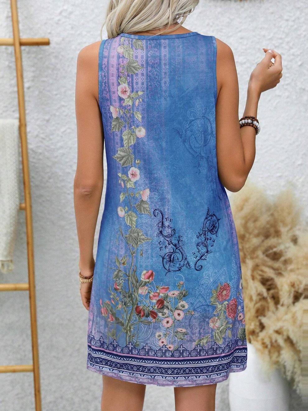 Vest Style Floral Print Dress With A Notched V Neck