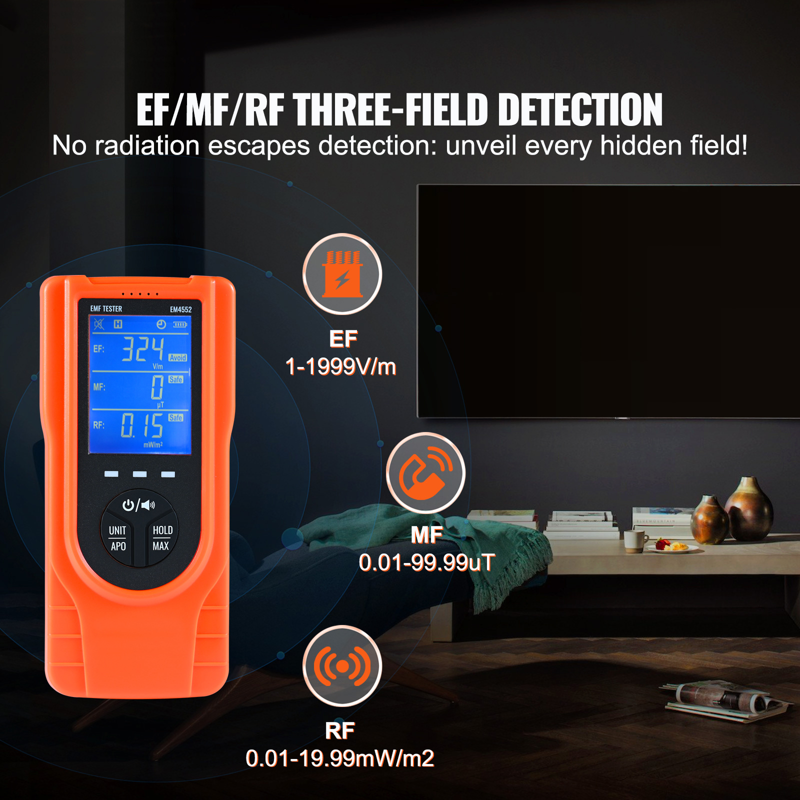 VEVOR EMF Meter, 5Hz 3.5GHz, Handheld Rechargeable Electromagnetic Field Radiation Detector, Digital LCD EMF Tester For EF MF RF Home Inspections Outdoor Ghost Hunting Paranormal Equipment