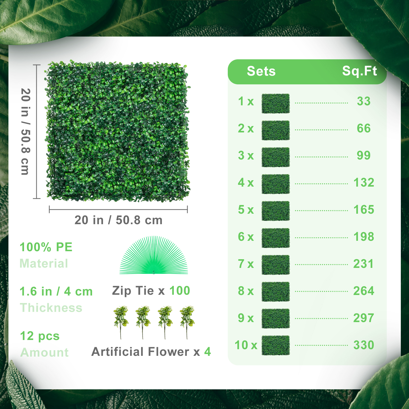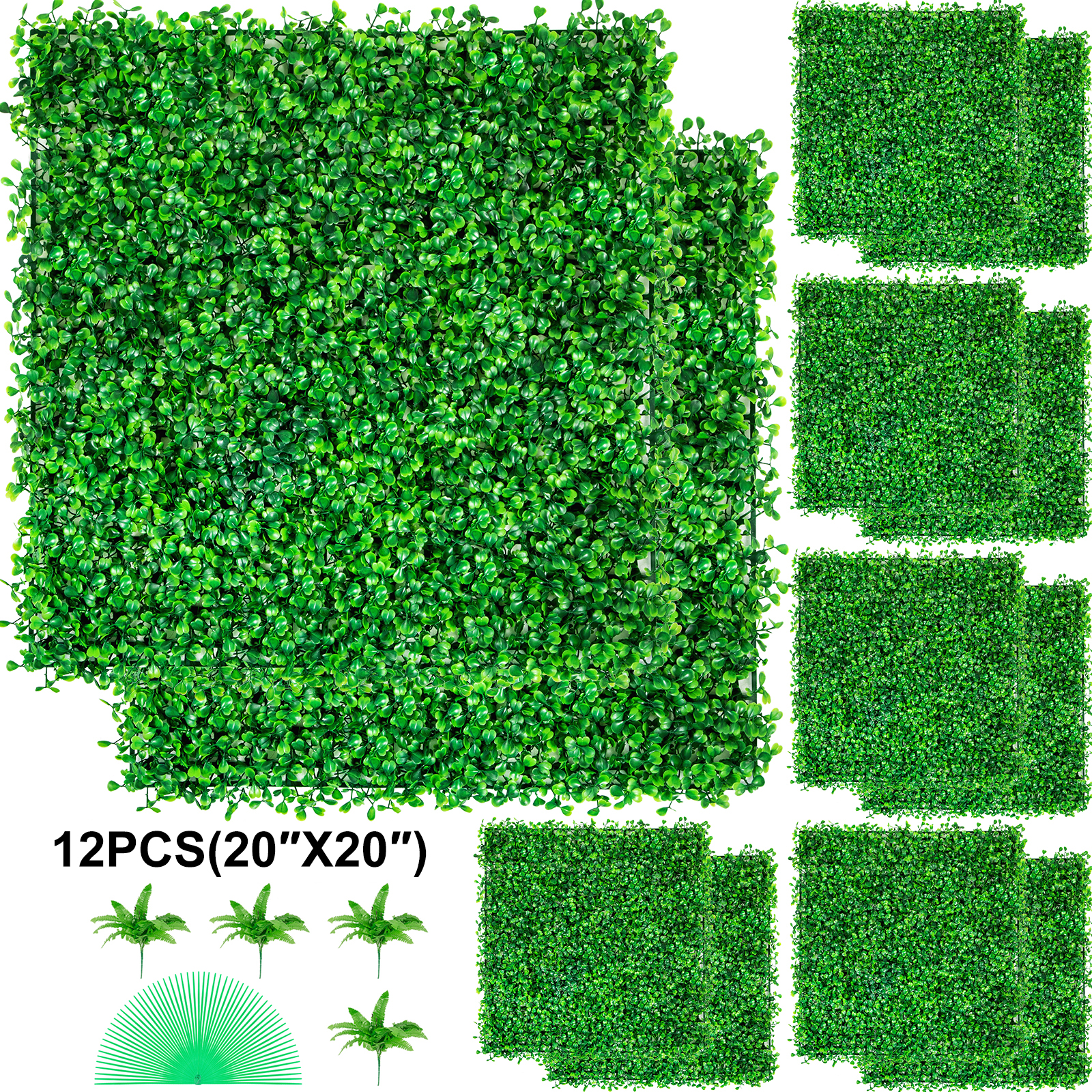 VEVOR 12PCS 20x20inch Artificial Boxwood Panels,Boxwood Hedge Wall Panels,Artificial Grass Backdrop Wall ,Privacy Hedge Screen UV Protected For Outdoor Indoor Garden