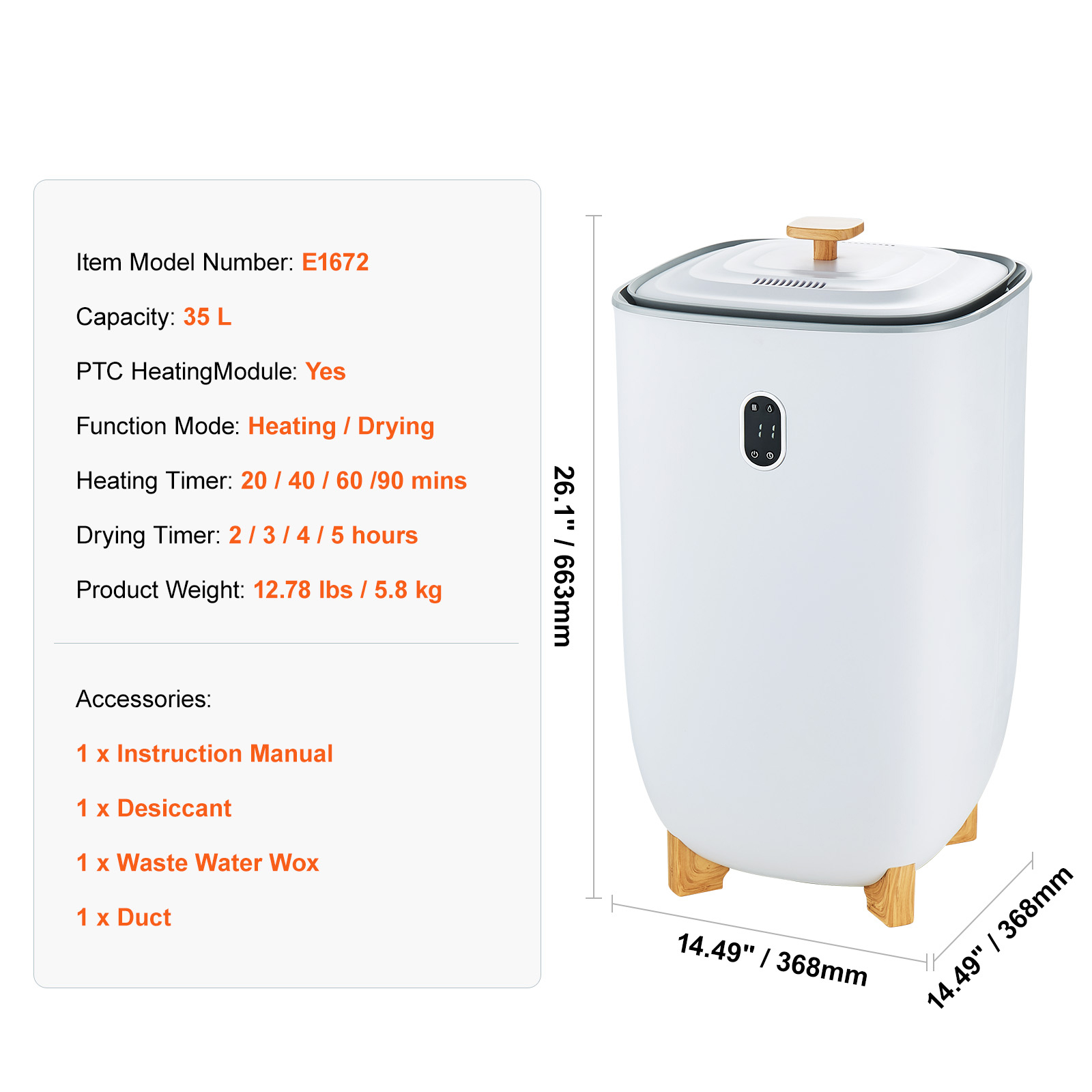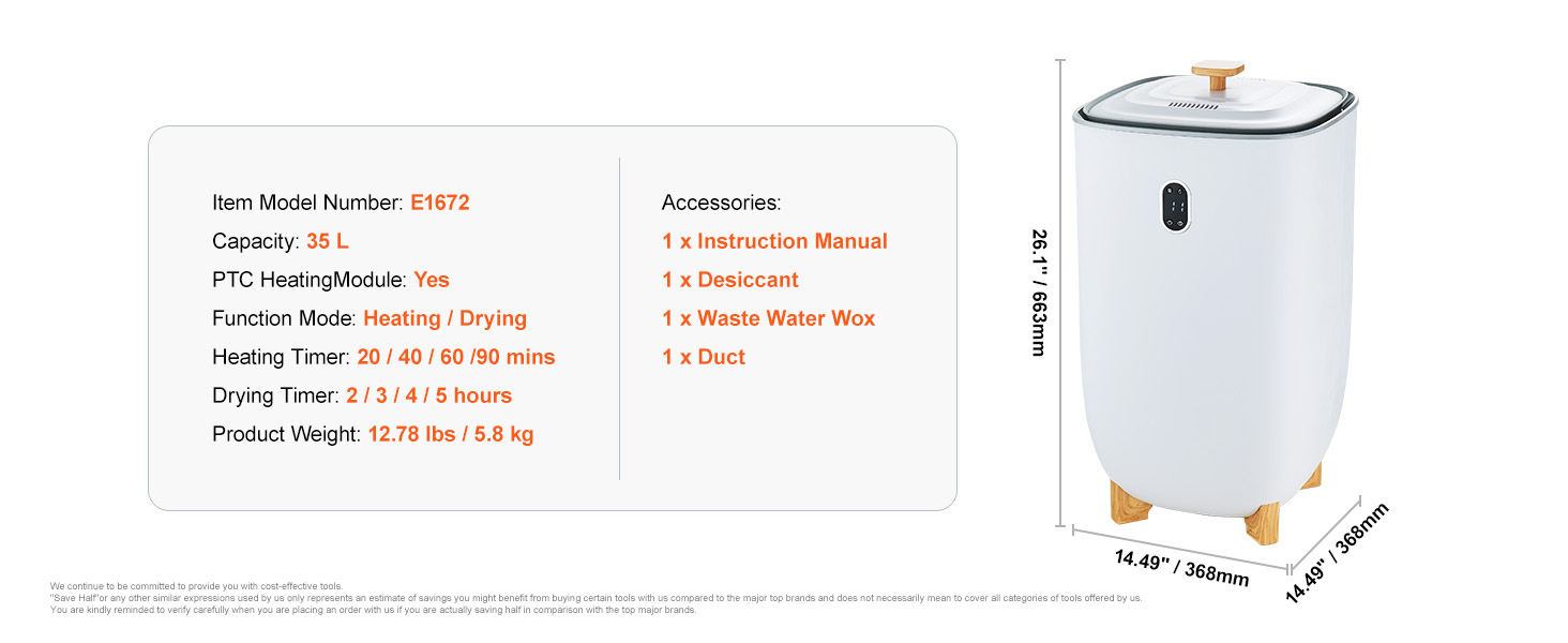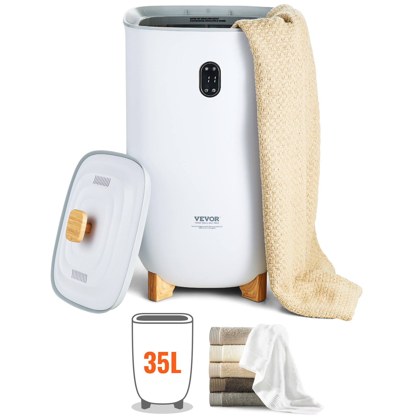VEVOR 35L Large Towel Warmer Bucket With LED Screen Drying Fuction & Timer White