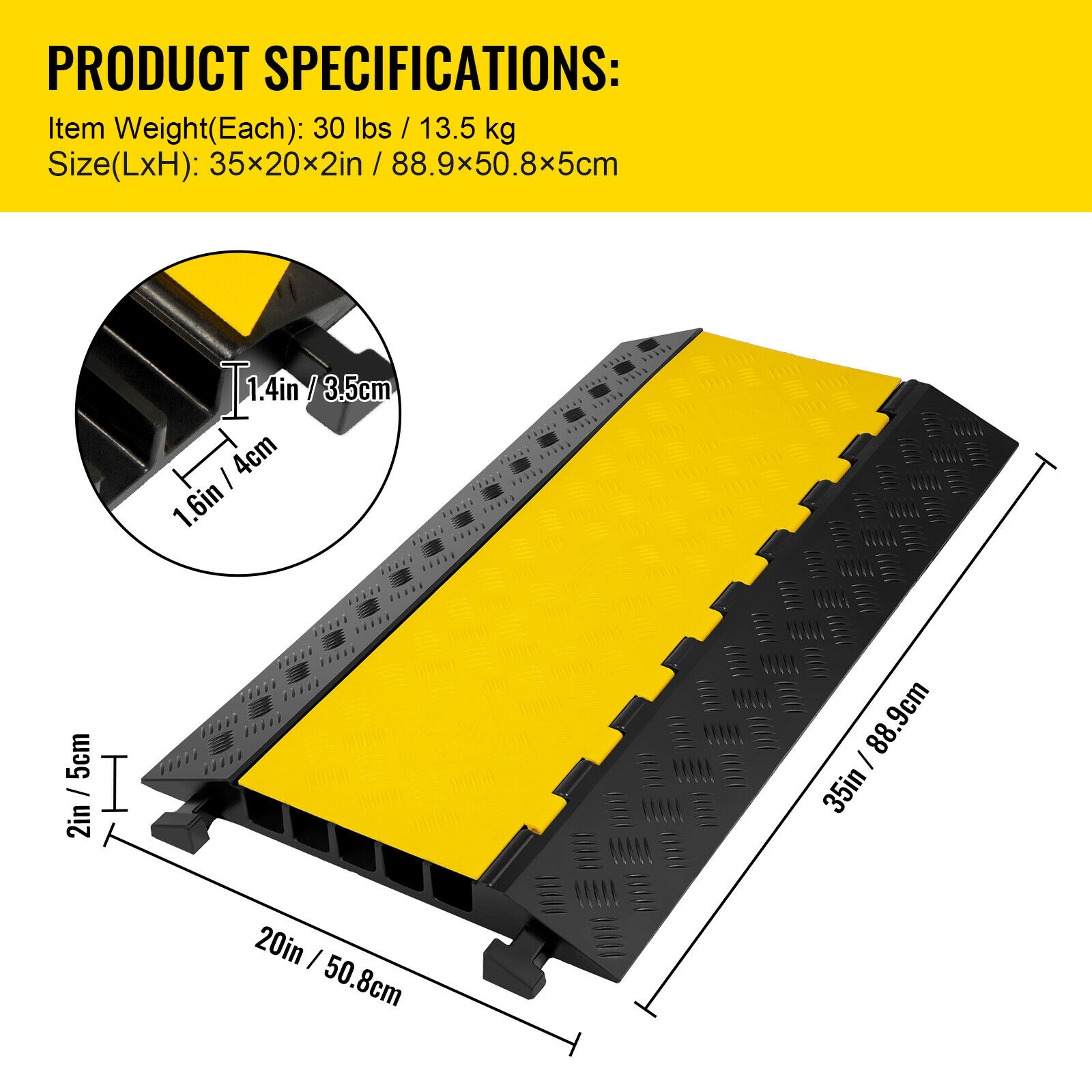 VEVOR 5 Channel Cable Protectors Extreme Rubber Cable Ramps Heavy Duty Protective Cable Wire Cord Ramp Driveway Rubber Traffic Speed Bumps Cable Protector