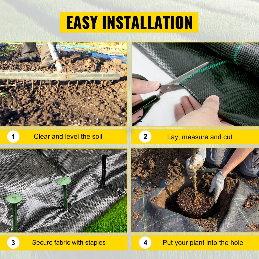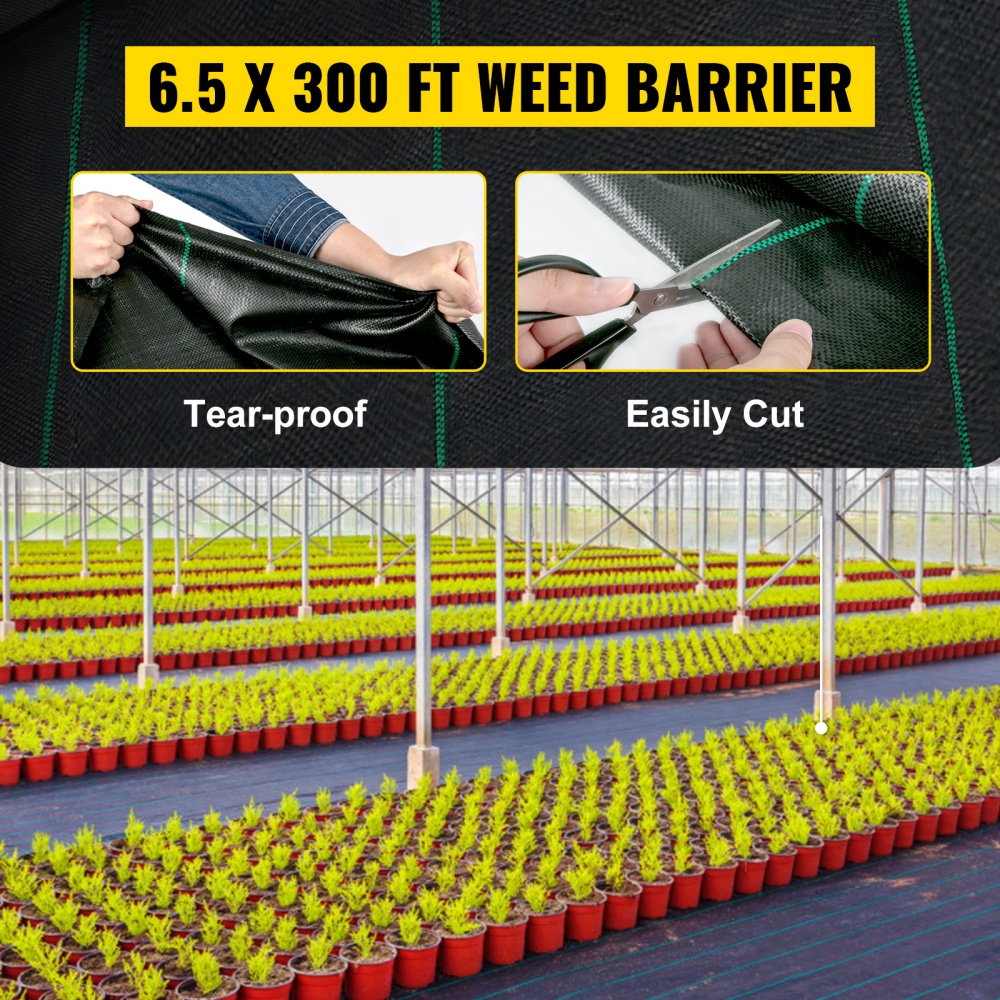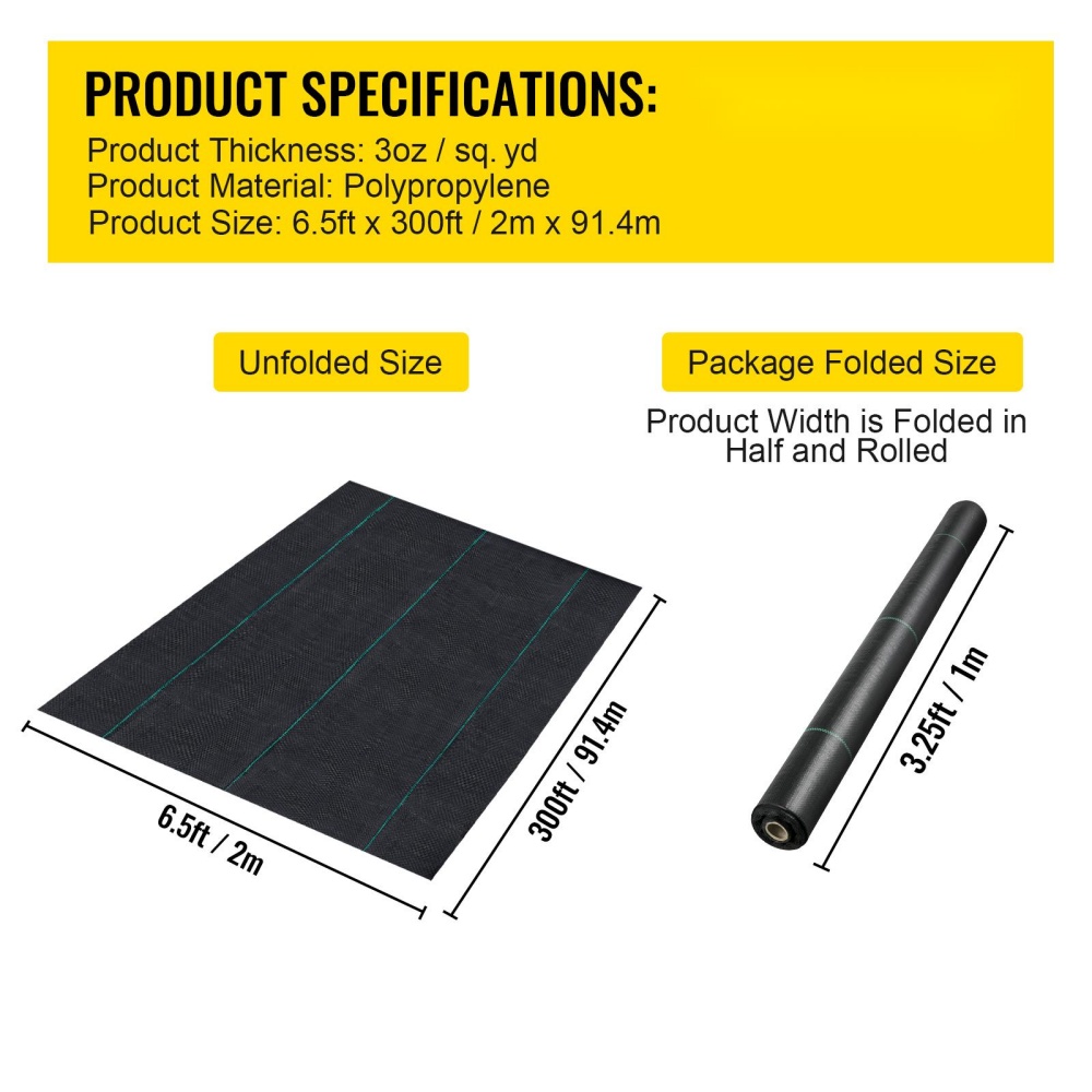 VEVOR 6.5FTx300FT Premium Weed Barrier Fabric Heavy Duty 3OZ, Woven Weed Control Fabric, High Permeability Good For Flower Bed, Geotextile Fabric For Underlayment, Polyethylene Ground Cover