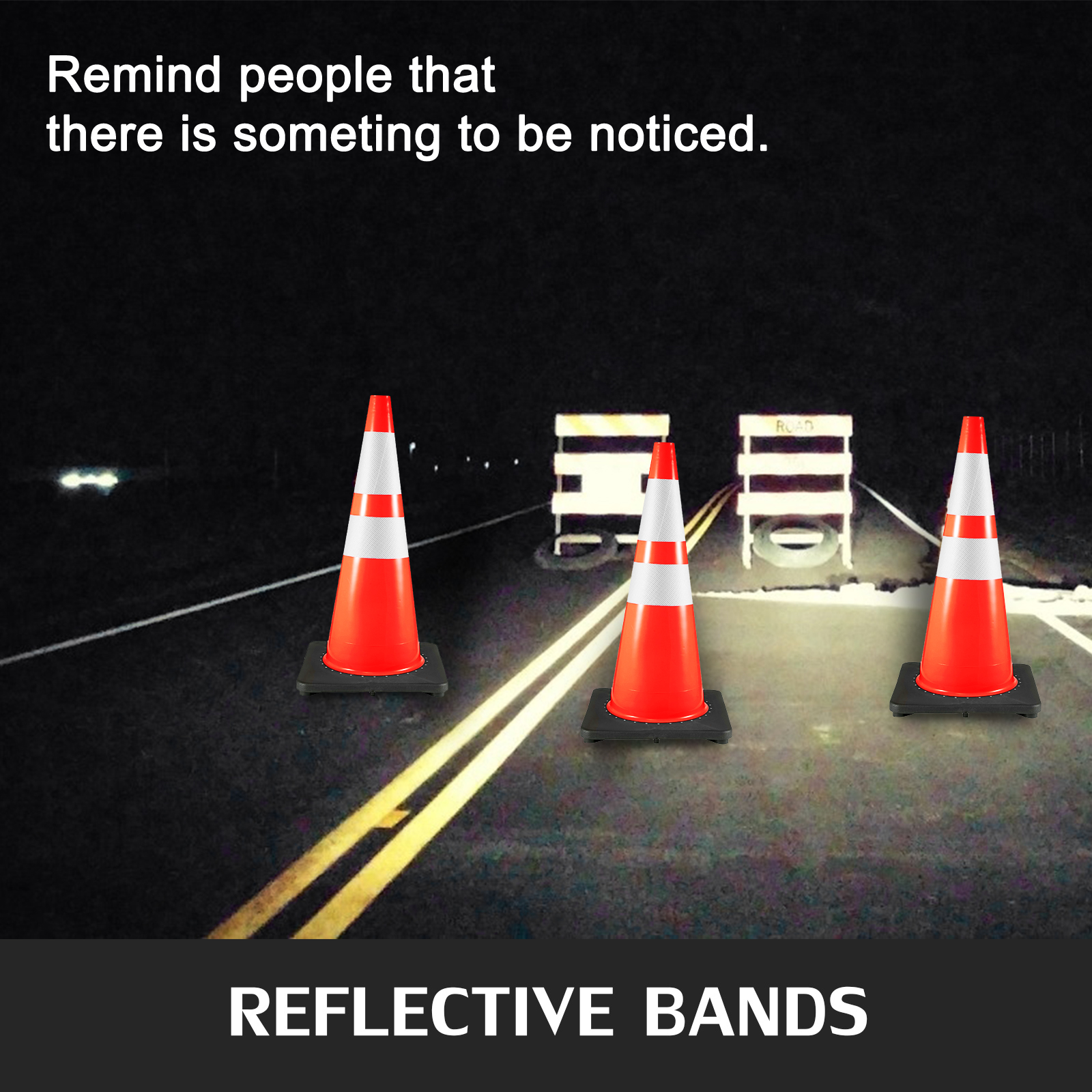 VEVOR 6Pack Traffic Cones, Safety Road Parking Cone With Black Weighted Base, PVC Orange Traffic Safety Cones, Hazard Cones Reflective Collars For Construction Traffic Parking