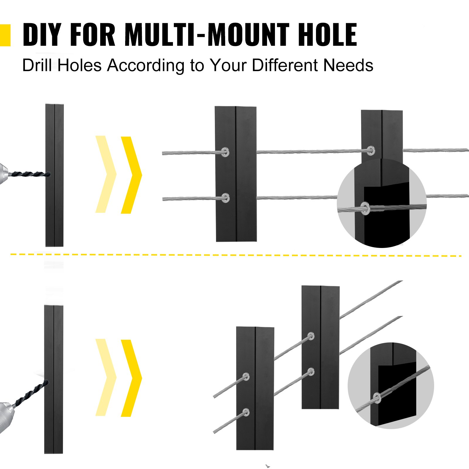 VEVOR Cable Rail Post Level Deck Stair Post 42 X 1.97 X 1.97 Cable Handrail Post Stainless Steel Brushed Finishing Deck Railing DIY Picket Without Hole Stair Railing Kit With Mount Bracket Black