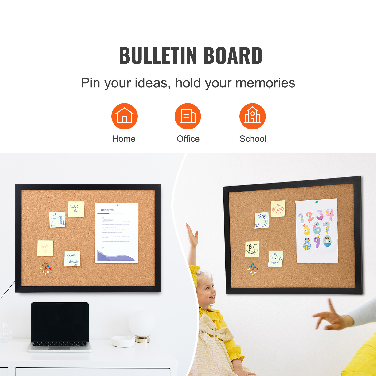 VEVOR Cork Board, 36x24 Inches Bulletin Board With MDF Sticker Frame, Vision Board Includes 10 Pushpins, For Display And Decoration In Office Home And School