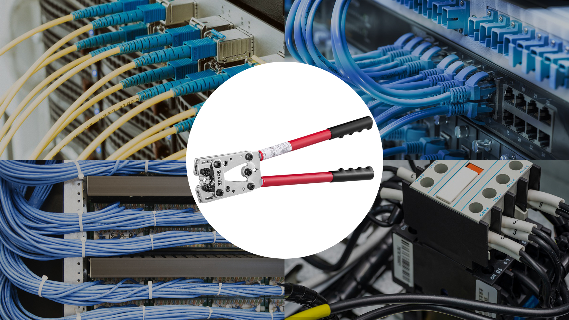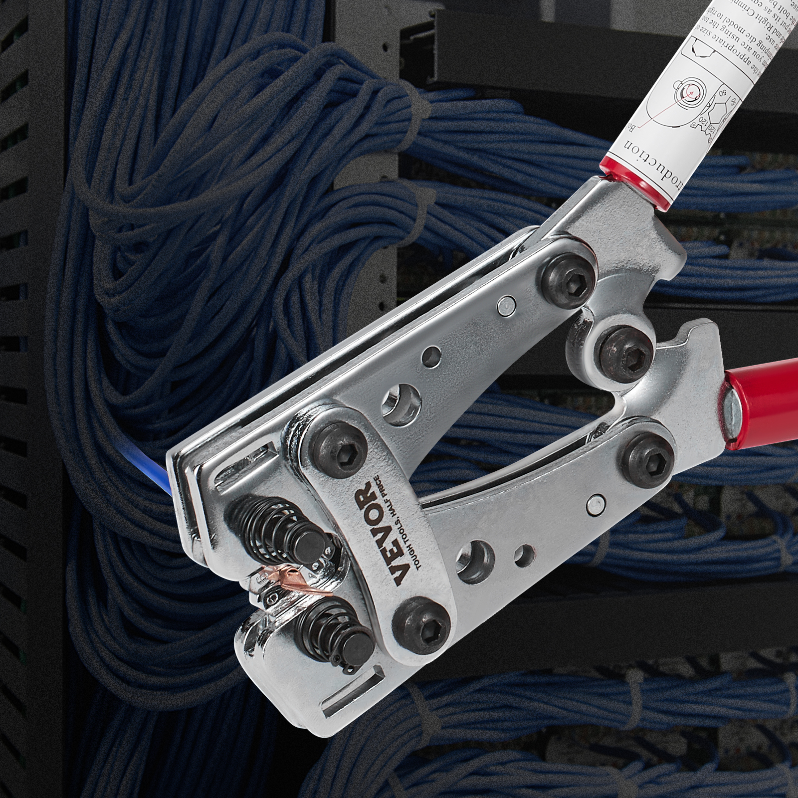 VEVOR Crimping Tool, AWG Copper And Aluminum Terminal Battery Lug Crimper, 6 Wire Sizes Crimping Die, With A Cutting Pliers, Gloves, 95pcs Copper Ring Connectors, And 100pcs Heat Shrink Tubes