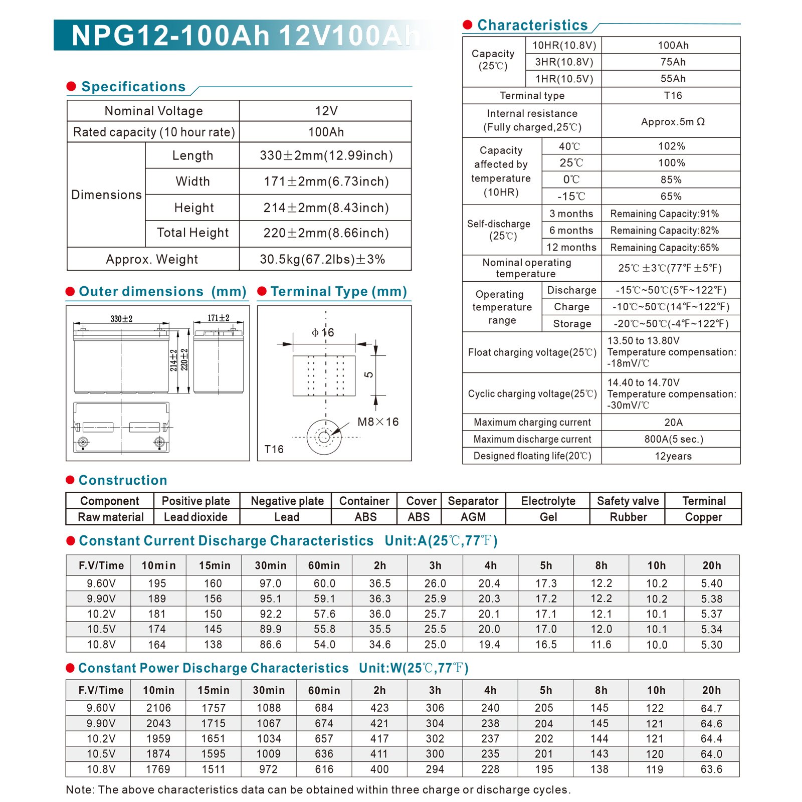 Specification(12V 100AH)