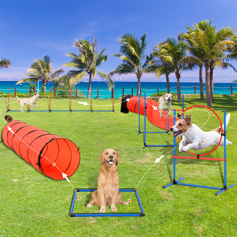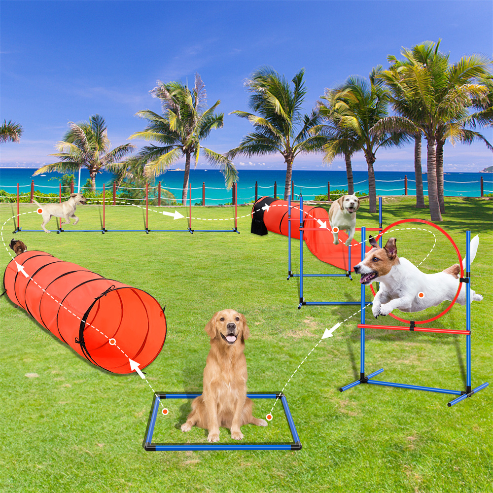 VEVOR Dog Agility Training Equipment 7 PCS Set Upgrade W Hurdles 2 Tunnels Ring