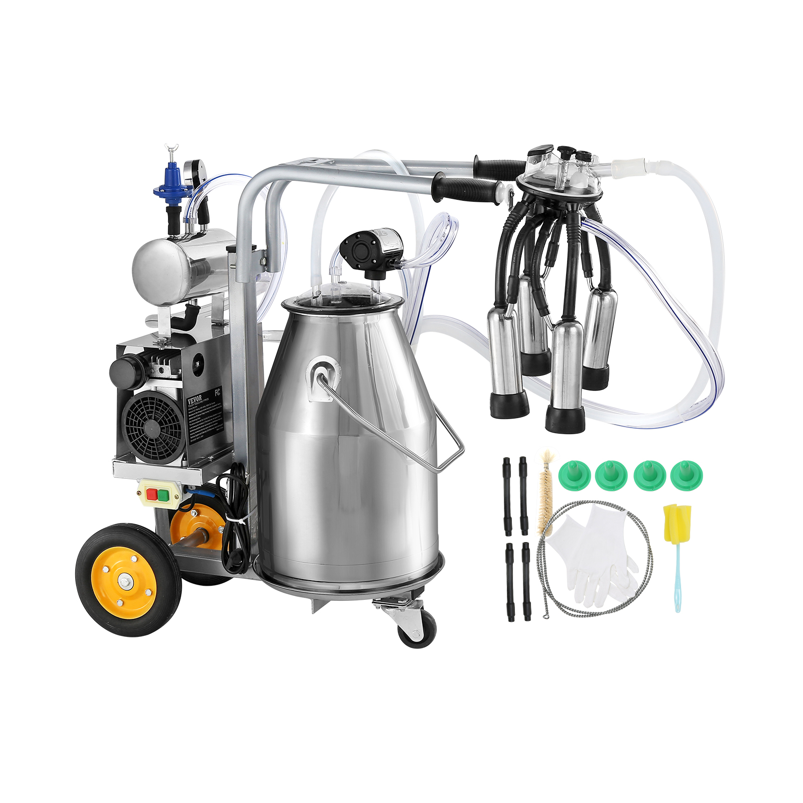 VEVOR Electric Cow Milking Machine, 6.6 Gal 25 L 304 Stainless Steel Bucket, Automatic Pulsation Vacuum Milker, Portable Milker With Food-grade Silicone Cups And Tubes, Adjustable Pressure