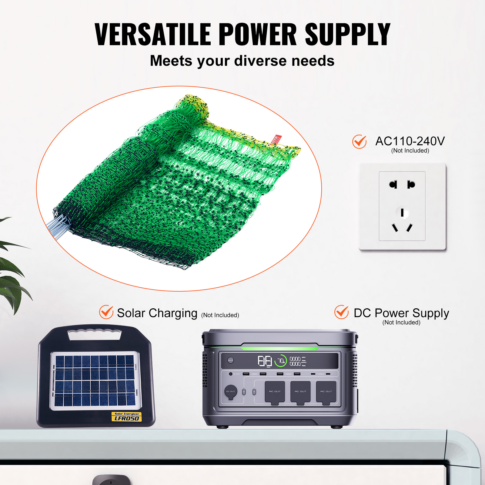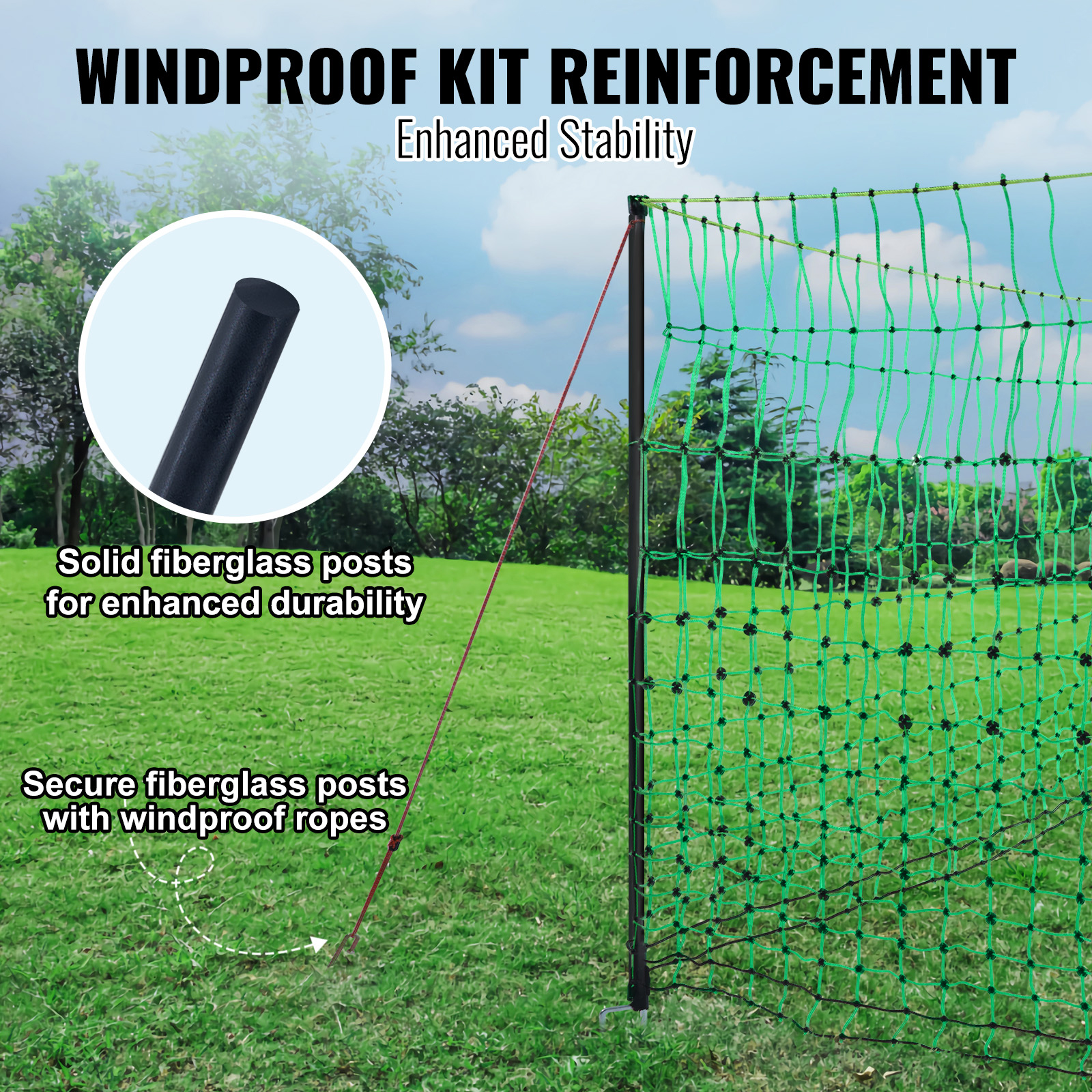 VEVOR Electric Fence Netting, 48inH X 168in L, PE Net Fencing Kit With Posts & Double-Spiked Stakes, Utility Portable Mesh For Chickens, Ducks, Geese, Rabbits, Used In Backyards, Farms, And Ranches