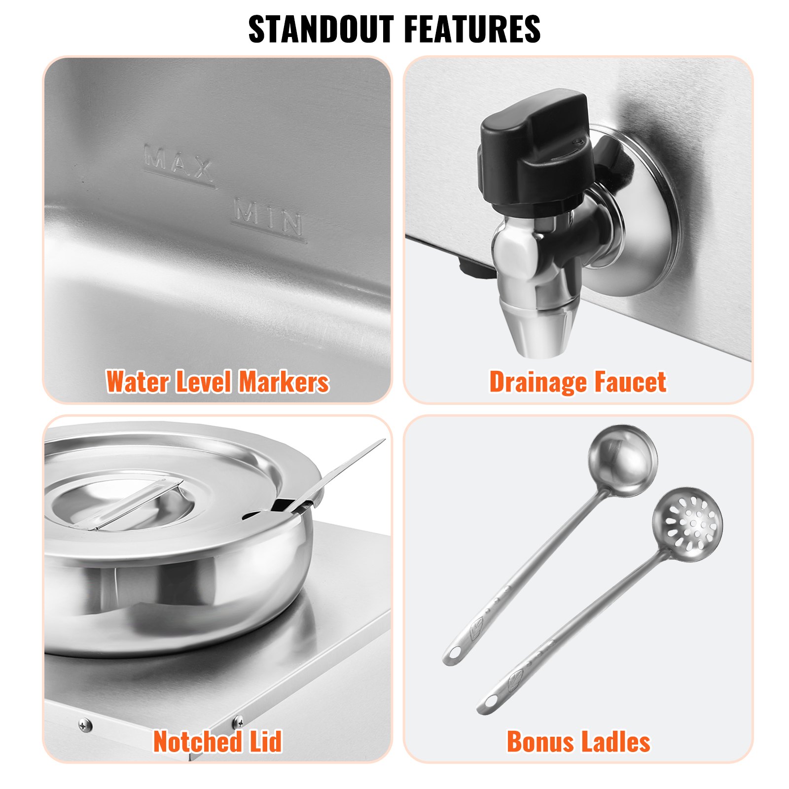 VEVOR Electric Soup Warmer, Dual 7.4QT Stainless Steel Round Pot Adjustable Temp, 1200W Commercial Bain Marie With Anti-dry Burn And Reset Button, Soup Station For Restaurant, Buffet, Silver