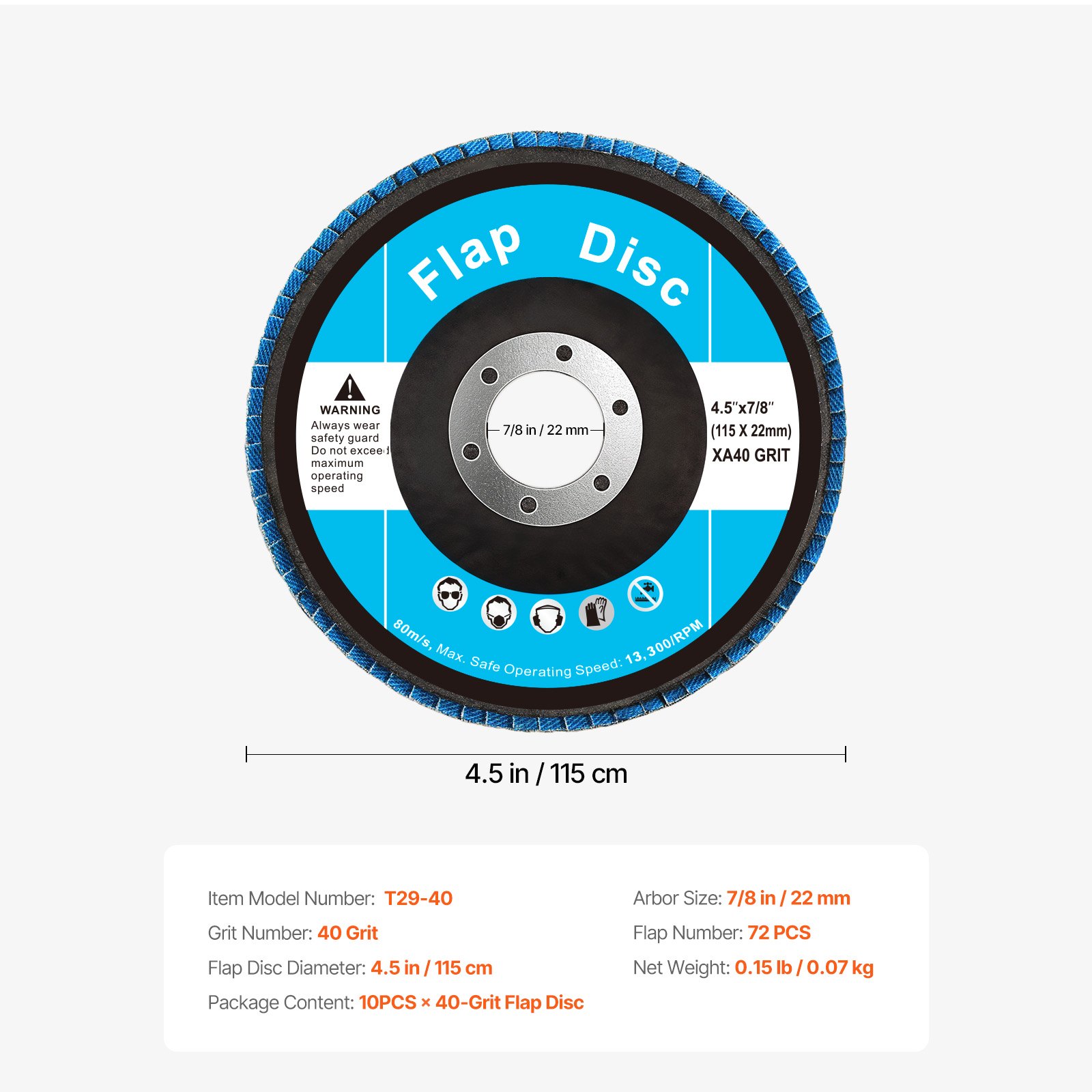 VEVOR Flap Discs Sanding Disc For Angle Grinder 40 Grit 10 Packs