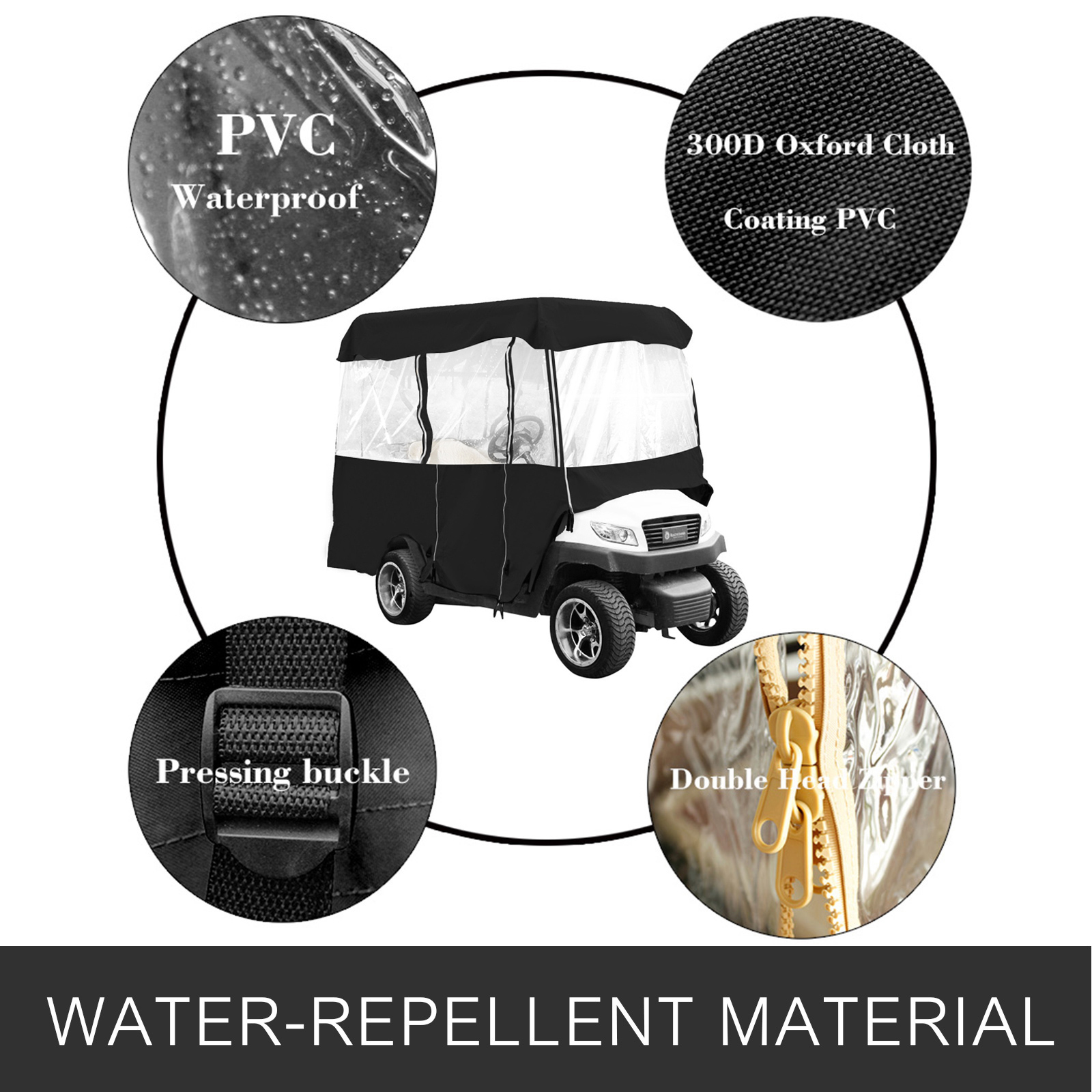 VEVOR Golf Cart Enclosure 86, 4-Person Golf Cart Cover, 4-Sided Fairway Deluxe, 300D Waterproof Driving Enclosure With Transparent Windows, Fit For EZGO, Club Car,