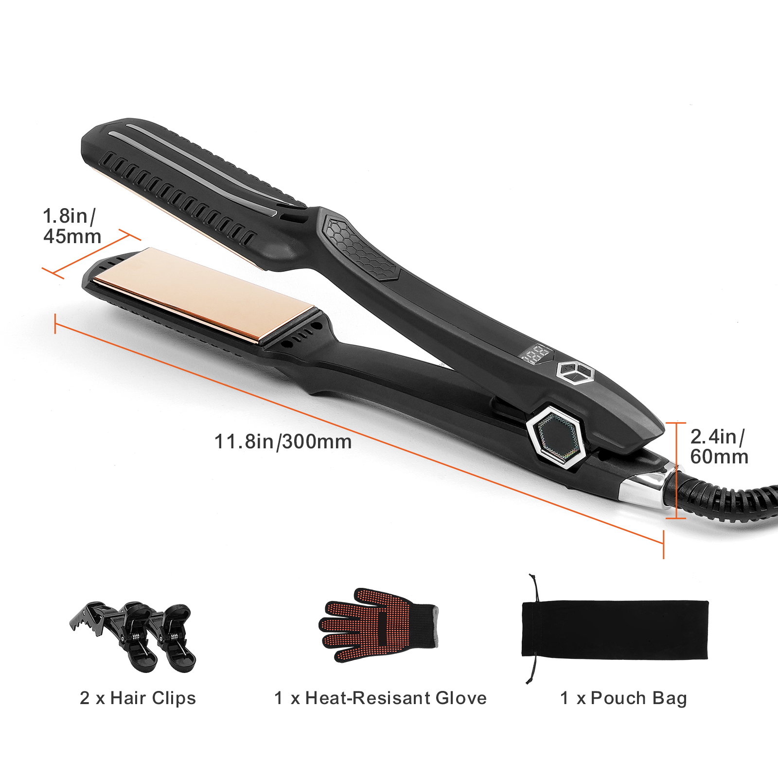VEVOR Hair Straightener, Titanium Flat Iron, Dual Infrared Hair Straightener Flat Iron With LCD Display And 19 Temp Levels, Dual Voltage 110V 240V For Salon Home Travel Use