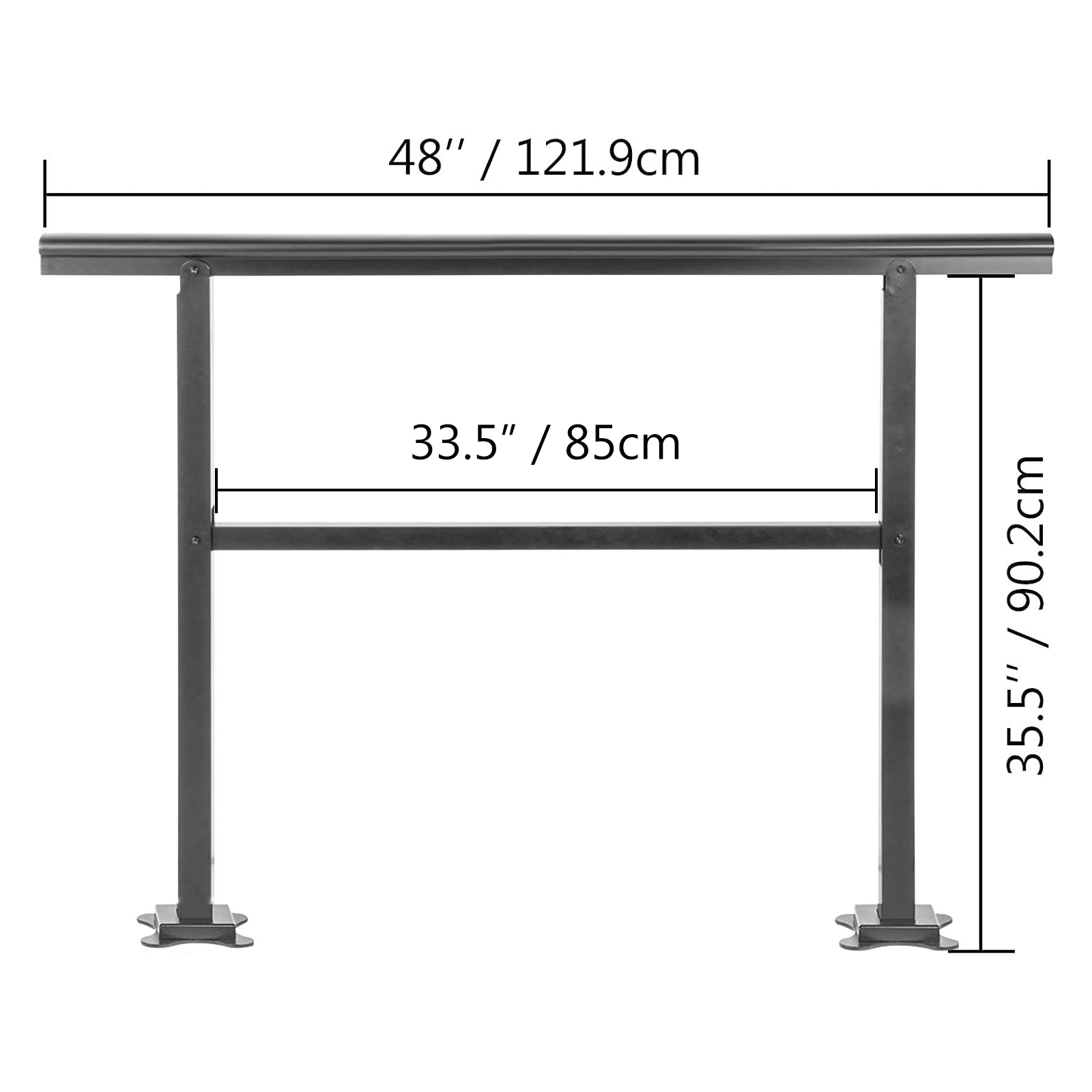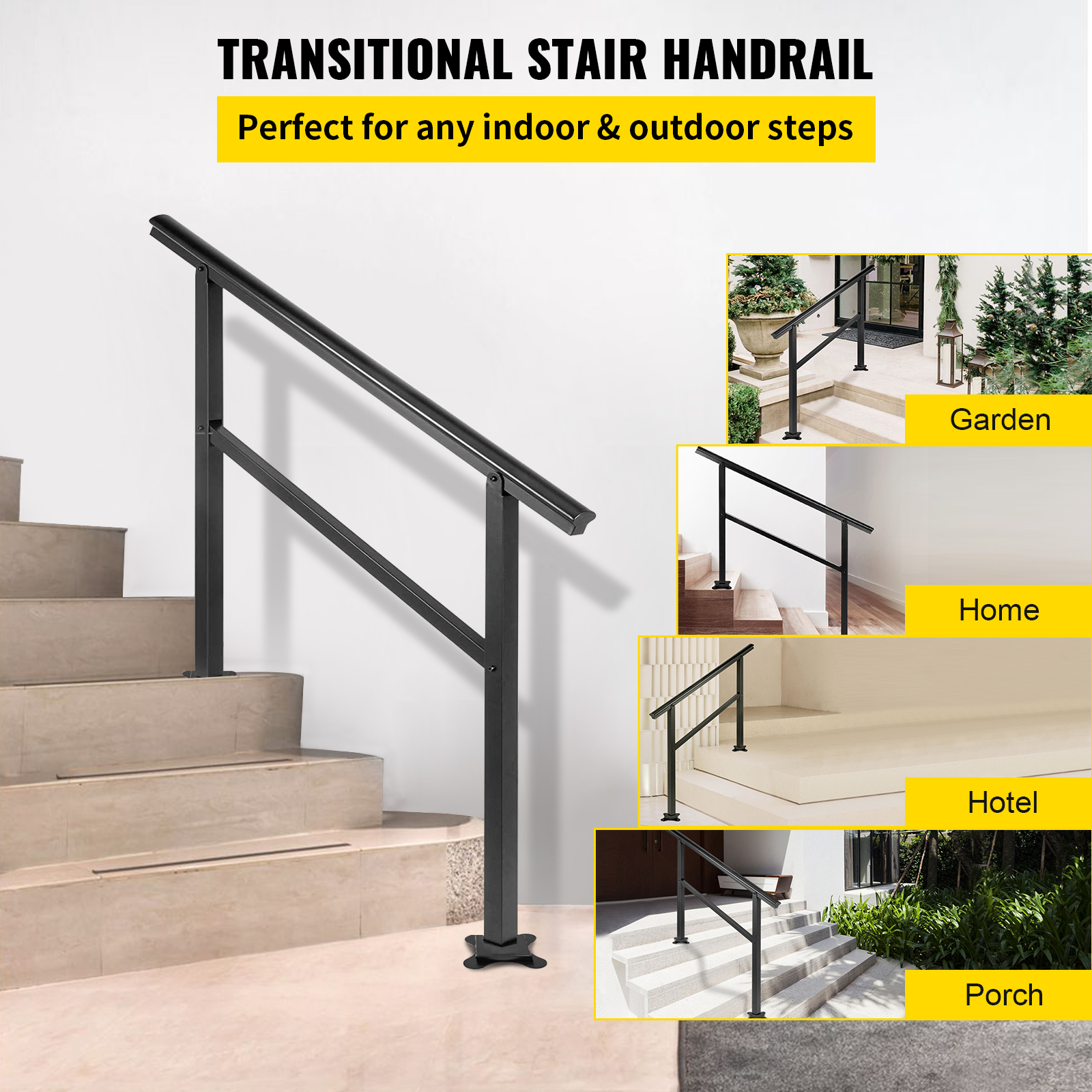 VEVOR Handrail Outdoor Stairs 47.6 X 35.2 Inch Outdoor Handrail Outdoor Stair Railing Adjustable From 0 To 30 Degrees Handrail For Stairs Outdoor Aluminum Black Stair Railing Fit 3-4 Steps