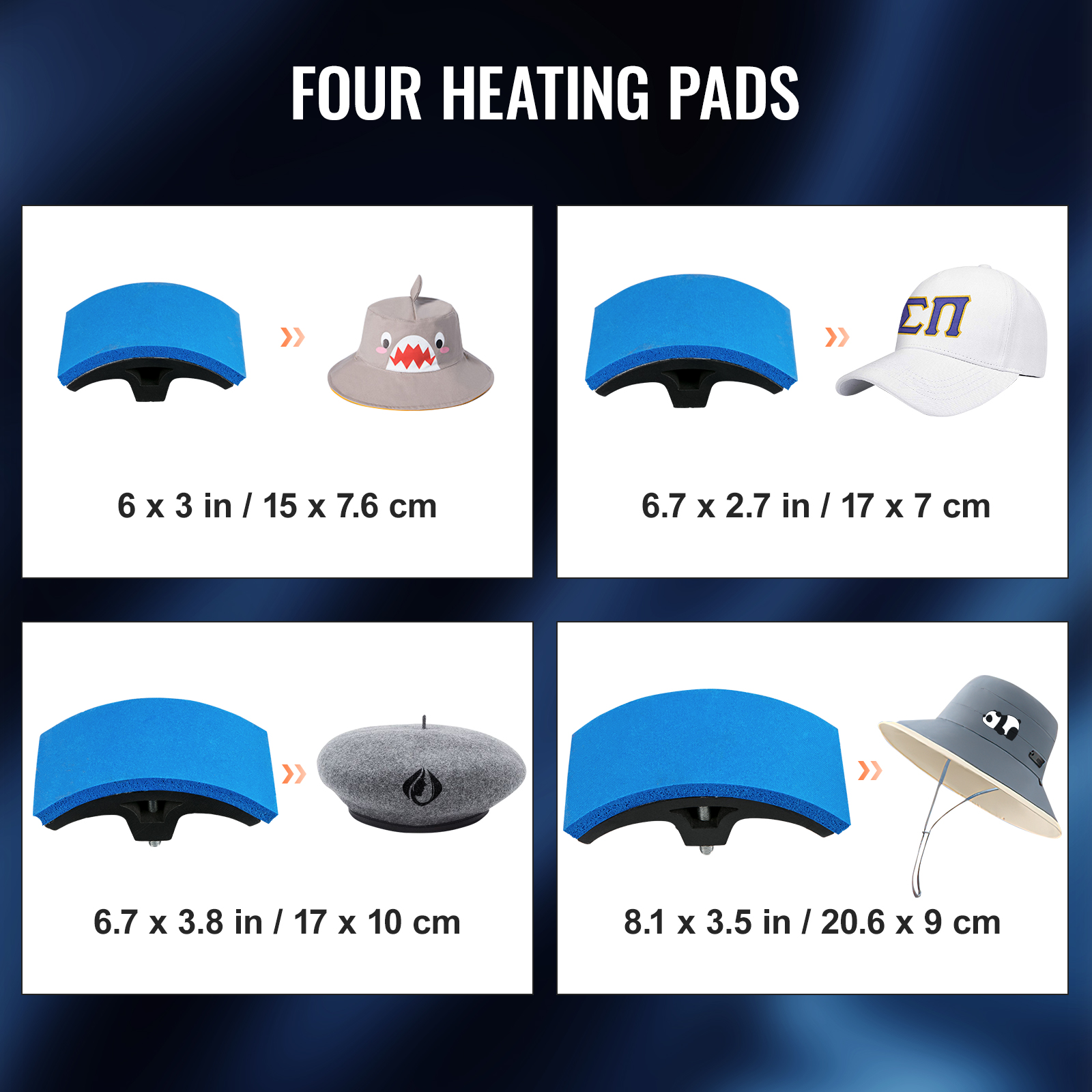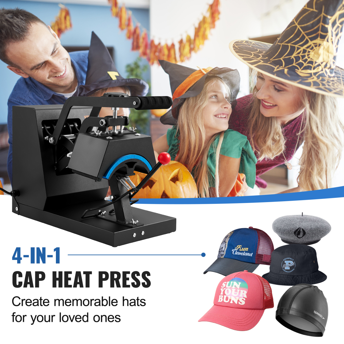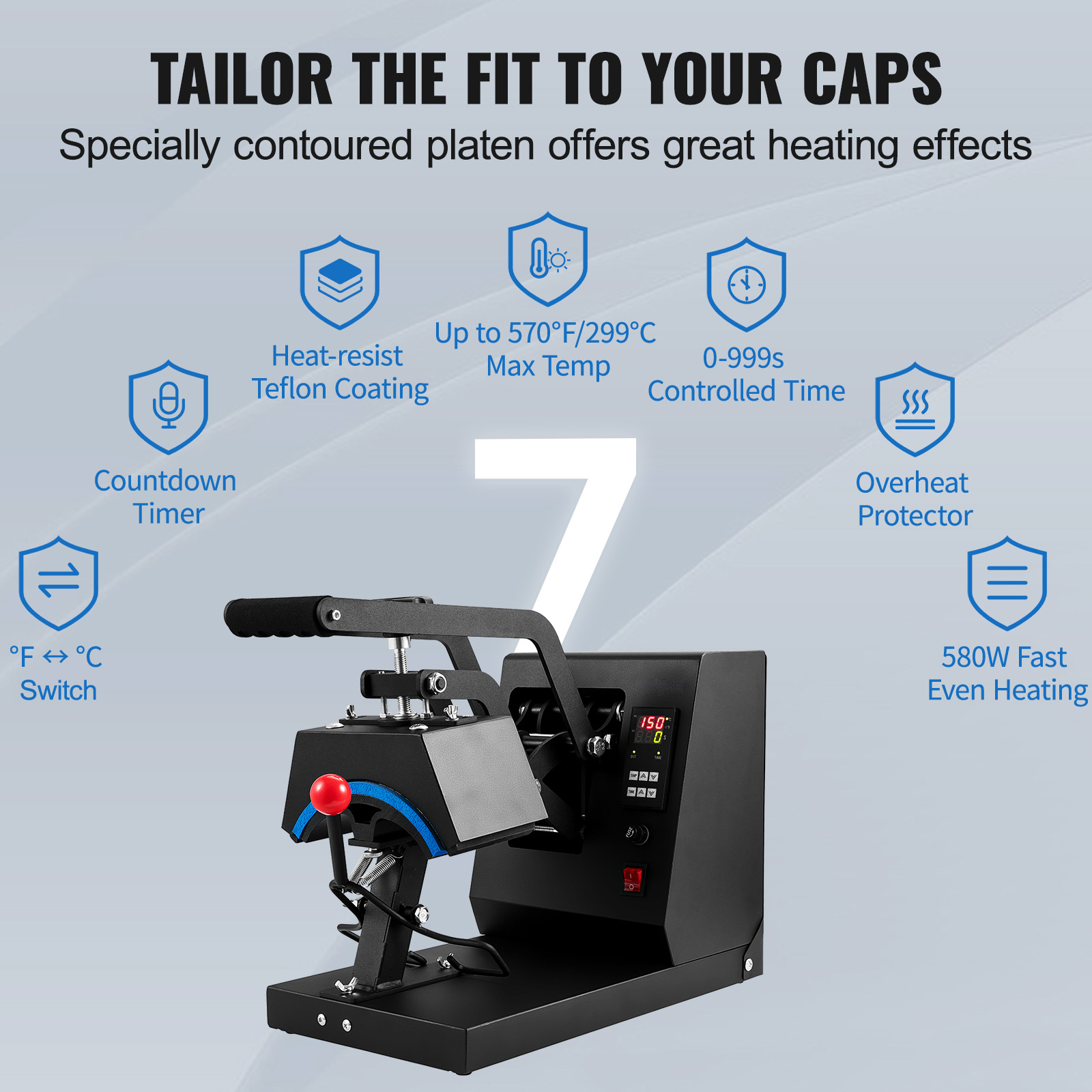 VEVOR Hat Heat Press,Cap Heat Press Machine, 6x3inches Clamshell Sublimation Transfer, LCD Digital Timer Temperature Control With 4pcs Curved Heating Elements